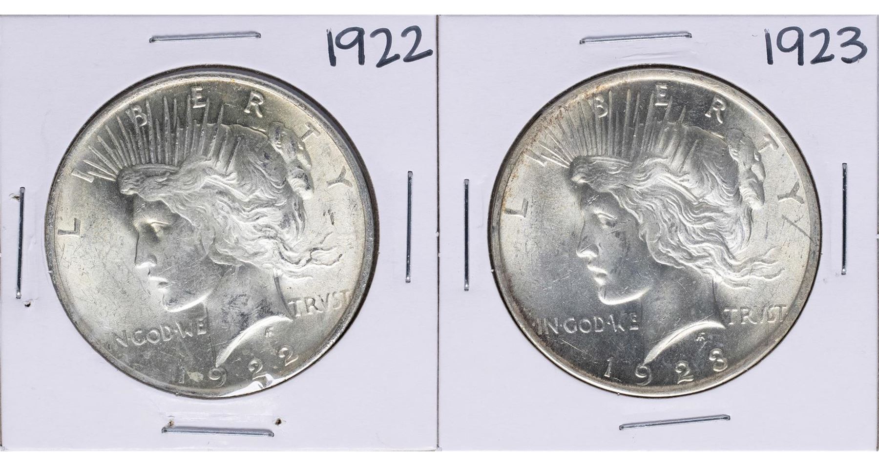One Lot of 1922-1923 $1 Peace Silver Dollar Coins.