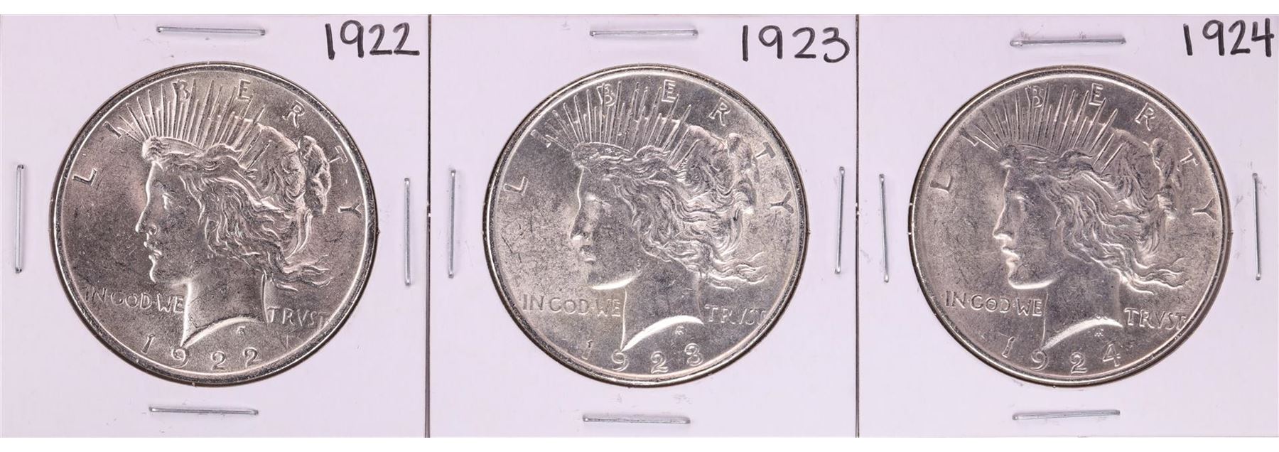 One Lot of 1922-1924 $1 Peace Silver Dollar Coins.