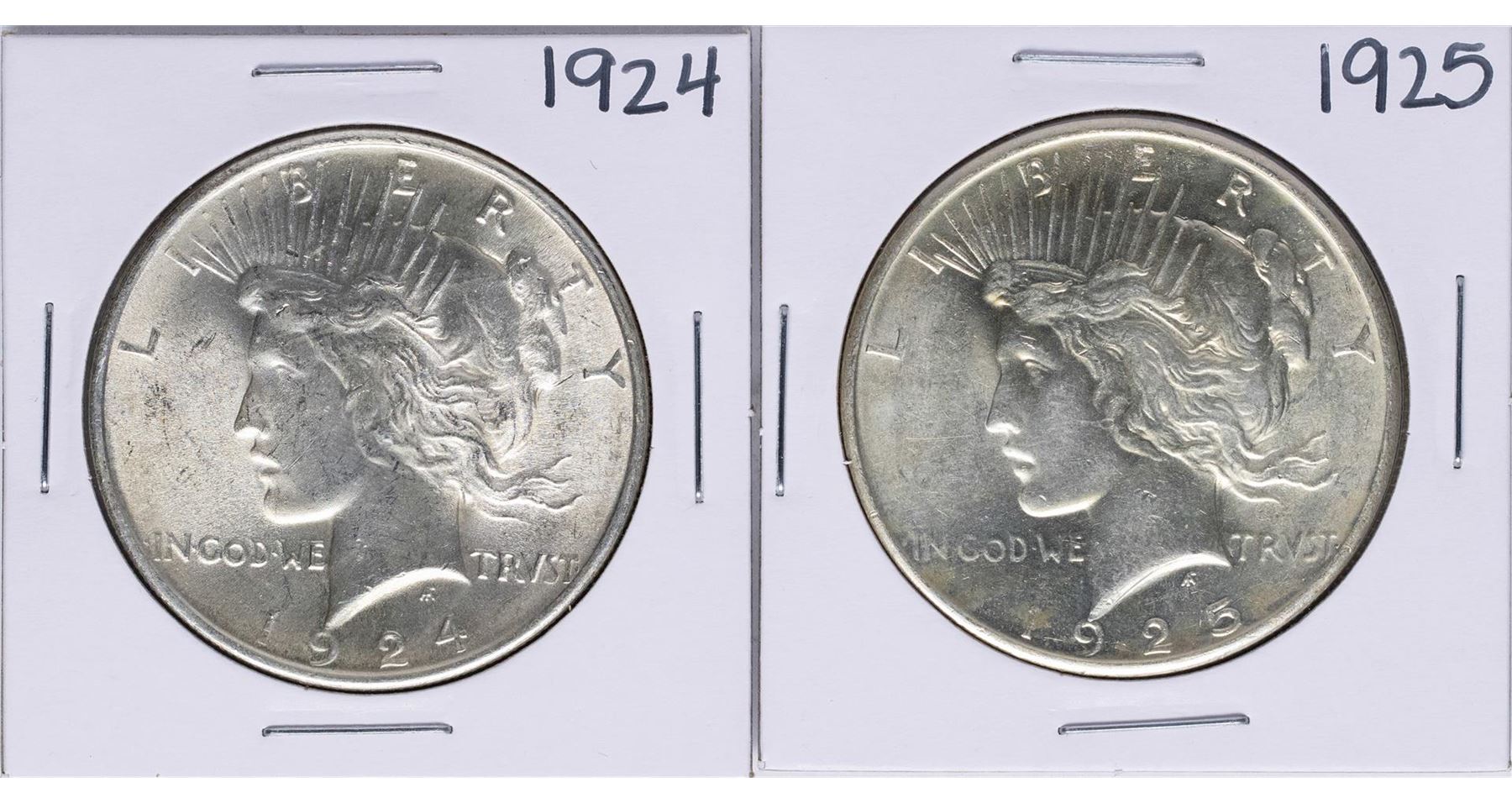 One Lot of 1924-1925 $1 Peace Silver Dollar Coins.