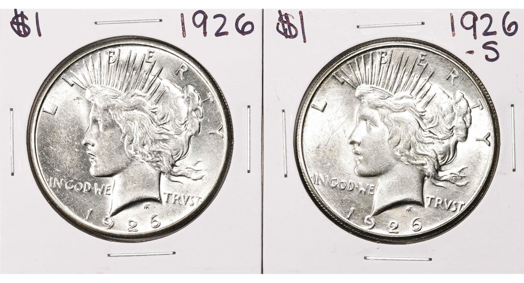 One Lot of 1926 & 1926-S $1 Peace Silver Dollar Coins.
