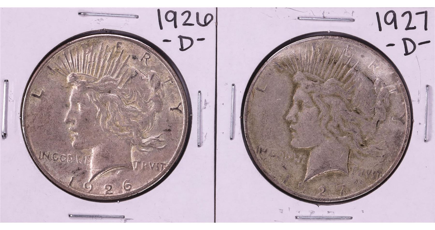 One Lot of 1926-D & 1927-D $1 Peace Silver Dollar Coins.