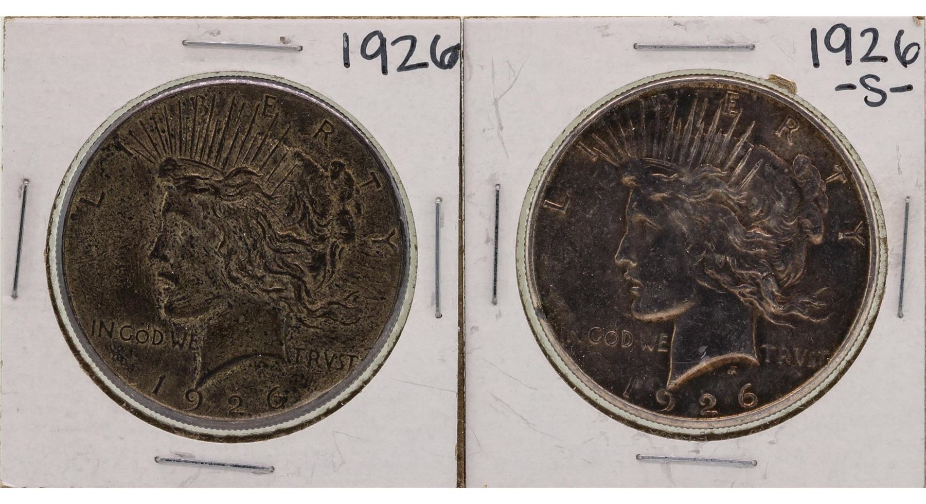 One Lot of 1926-S & 1926 $1 Peace Silver Dollar Coins.
