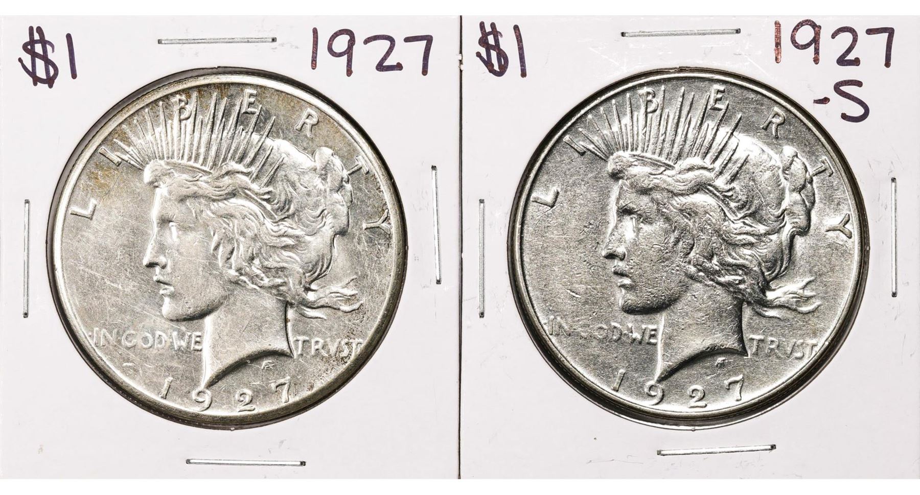One Lot of 1927 & 1927-S $1 Peace Silver Dollar Coins.