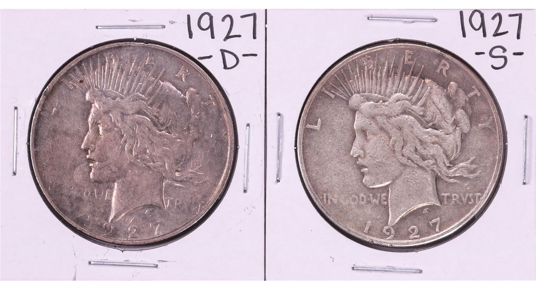 One Lot of 1927-D & 1927-S $1 Peace Silver Dollar Coins.