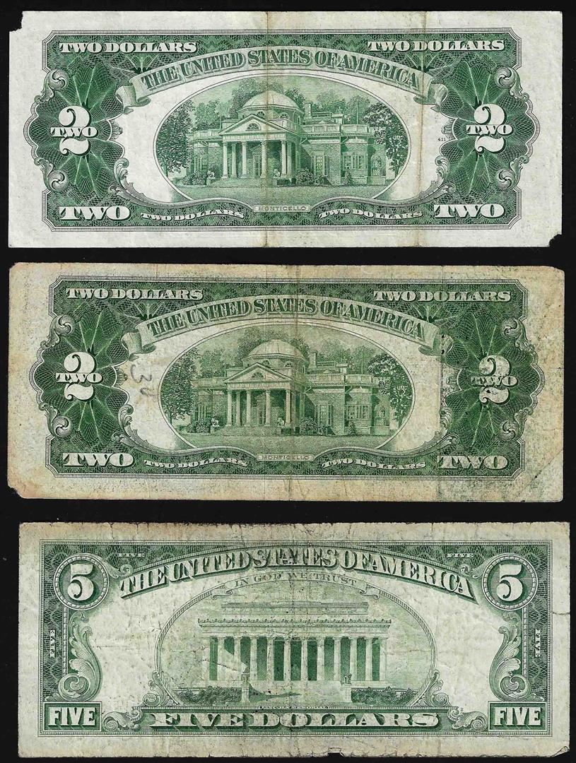 Lot of 1928 $1 Silver Certificate and 1928 $2/$5 Legal Tender Notes