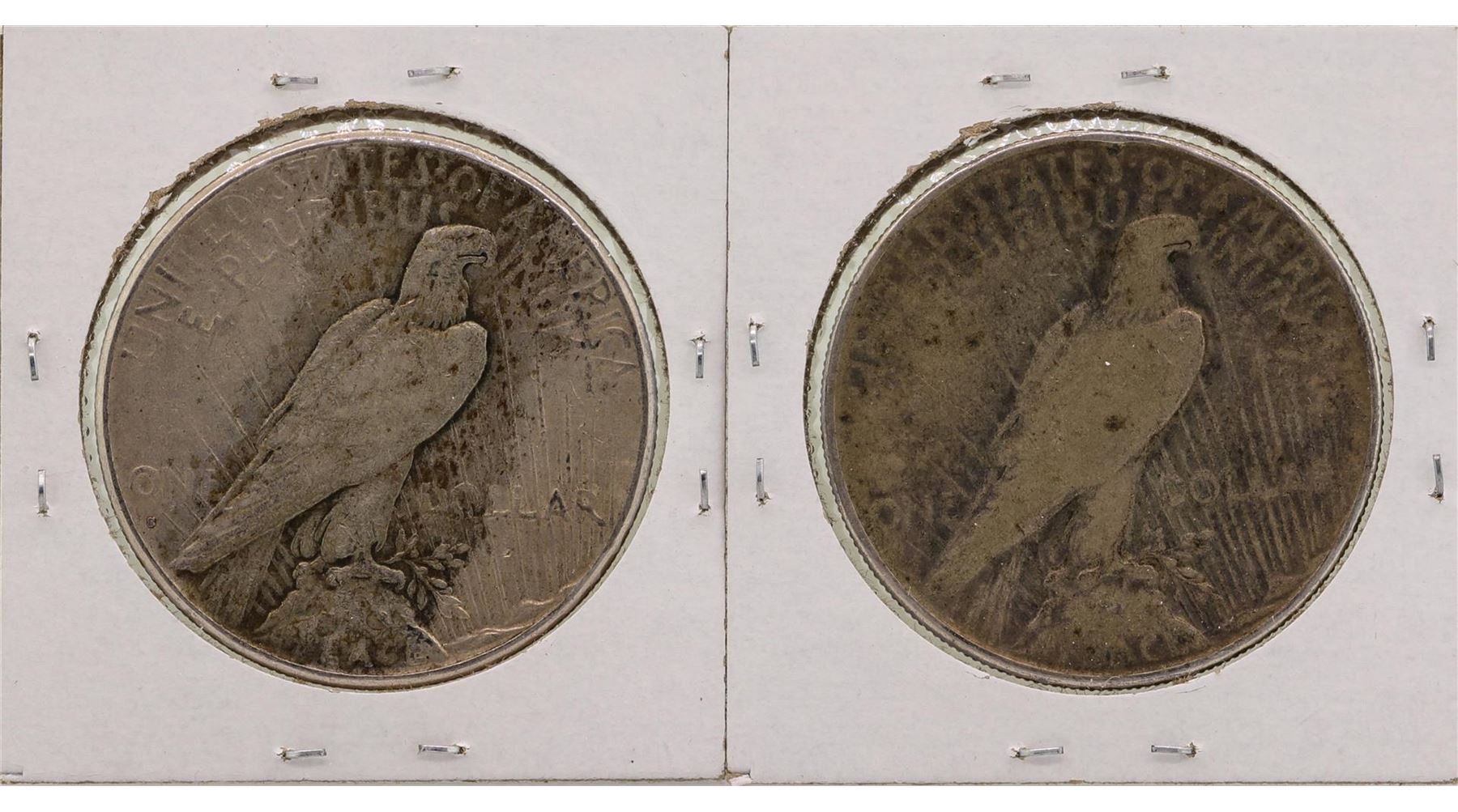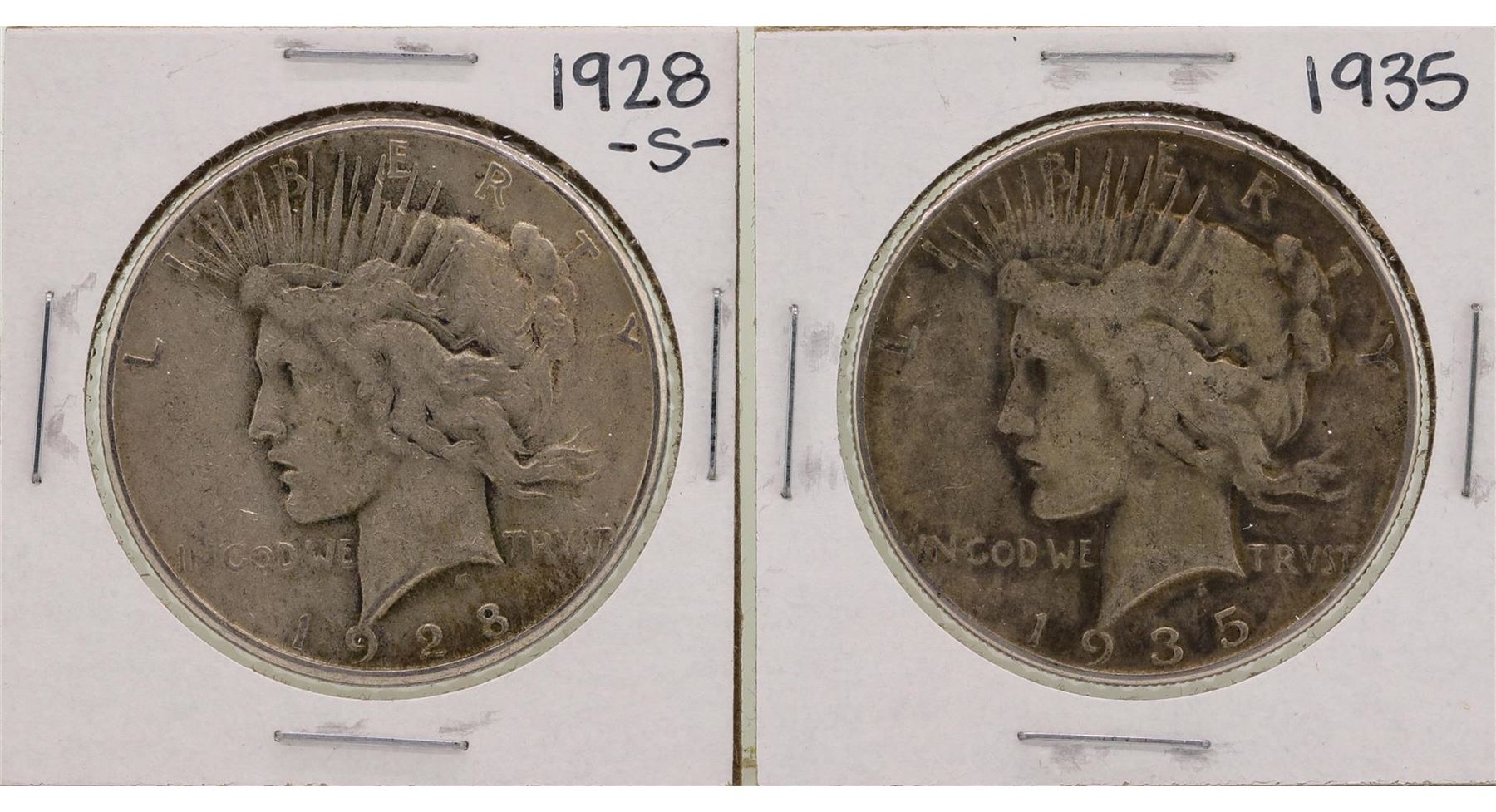One Lot of 1928-S & 1935 $1 Peace Silver Dollar Coins.
