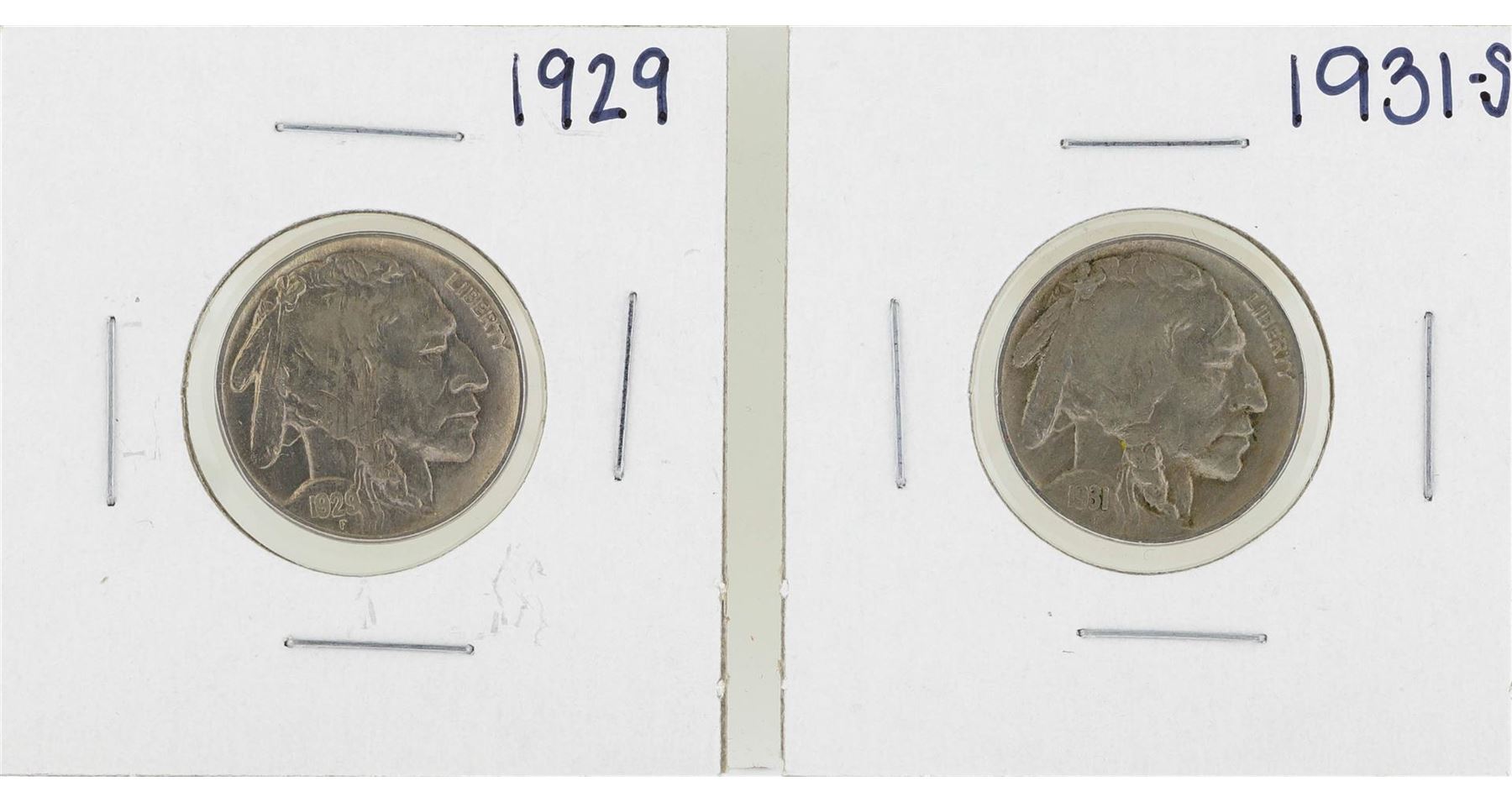One Lot of 1929 & 1931-S Buffalo Nickel Coins .