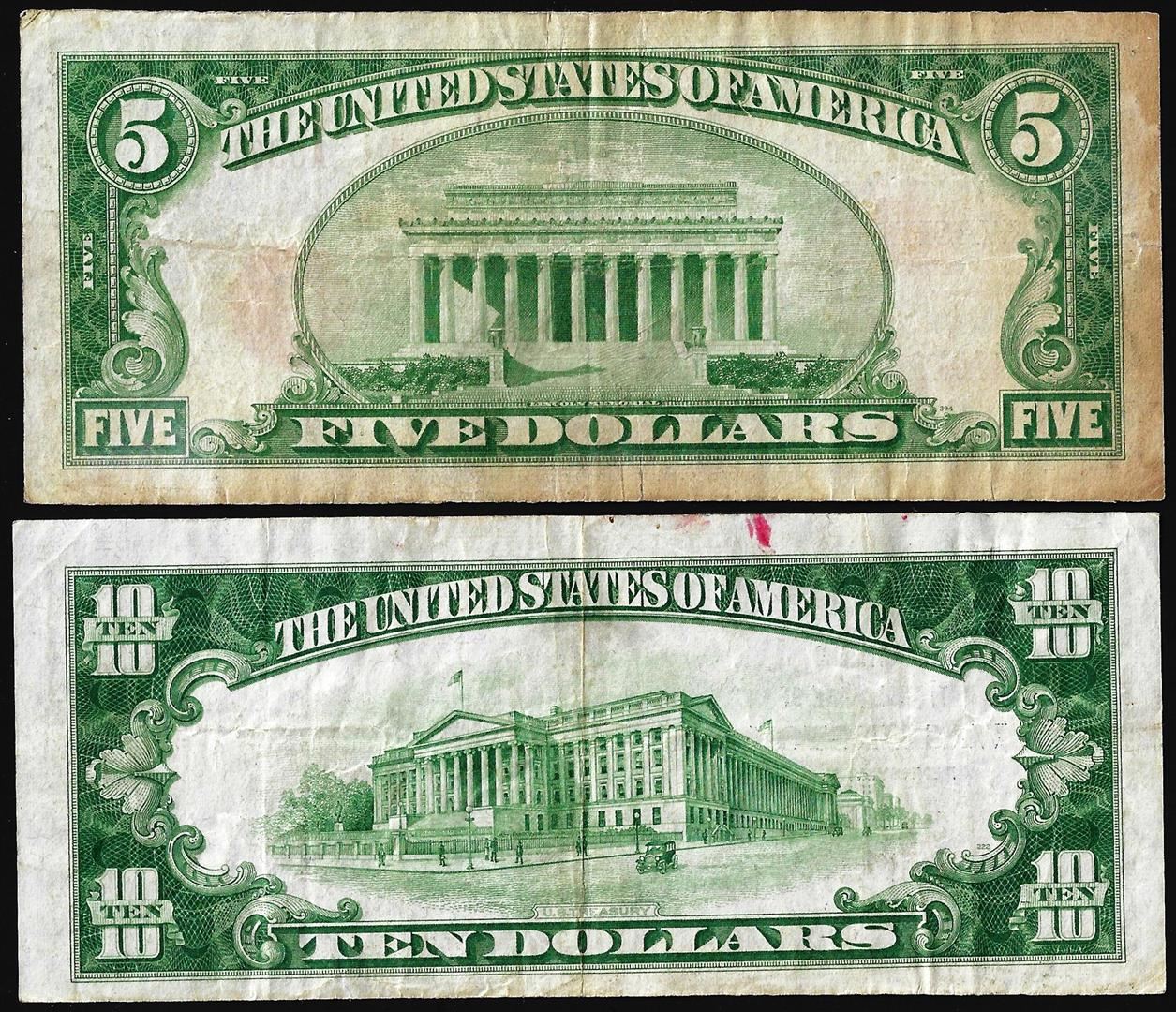 Lot of 1929 Ty. 2 $5/10 Citizens NB of Washington, PA CH# 3383 National Currency Notes