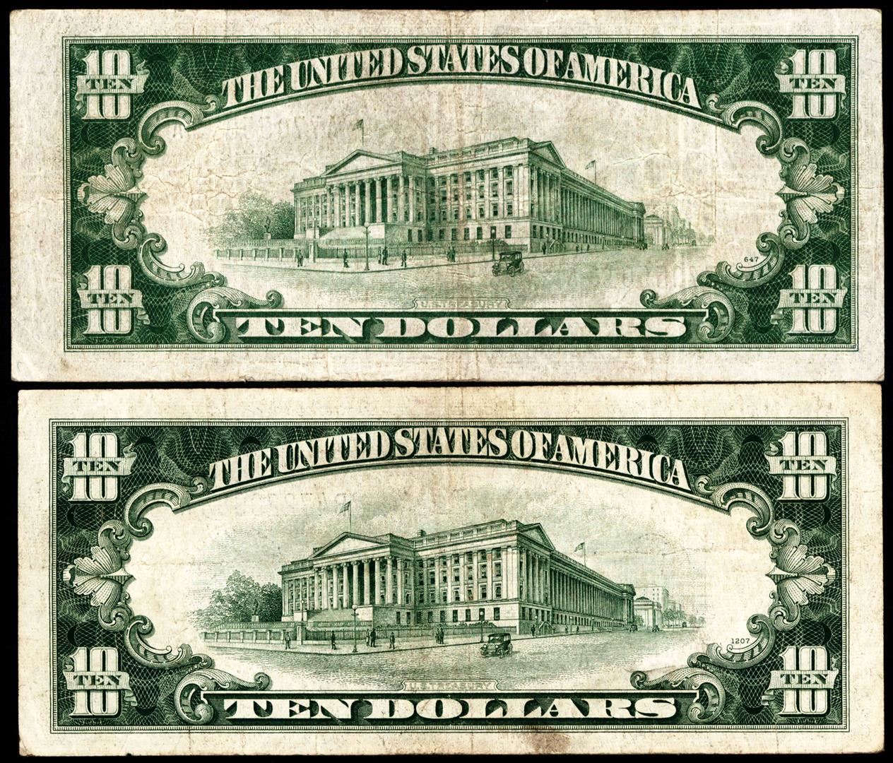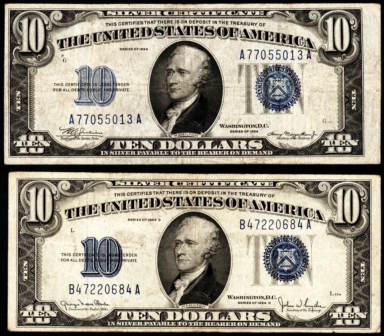 One Lot of 1934 & 1934D $10 Silver Certificate Notes.