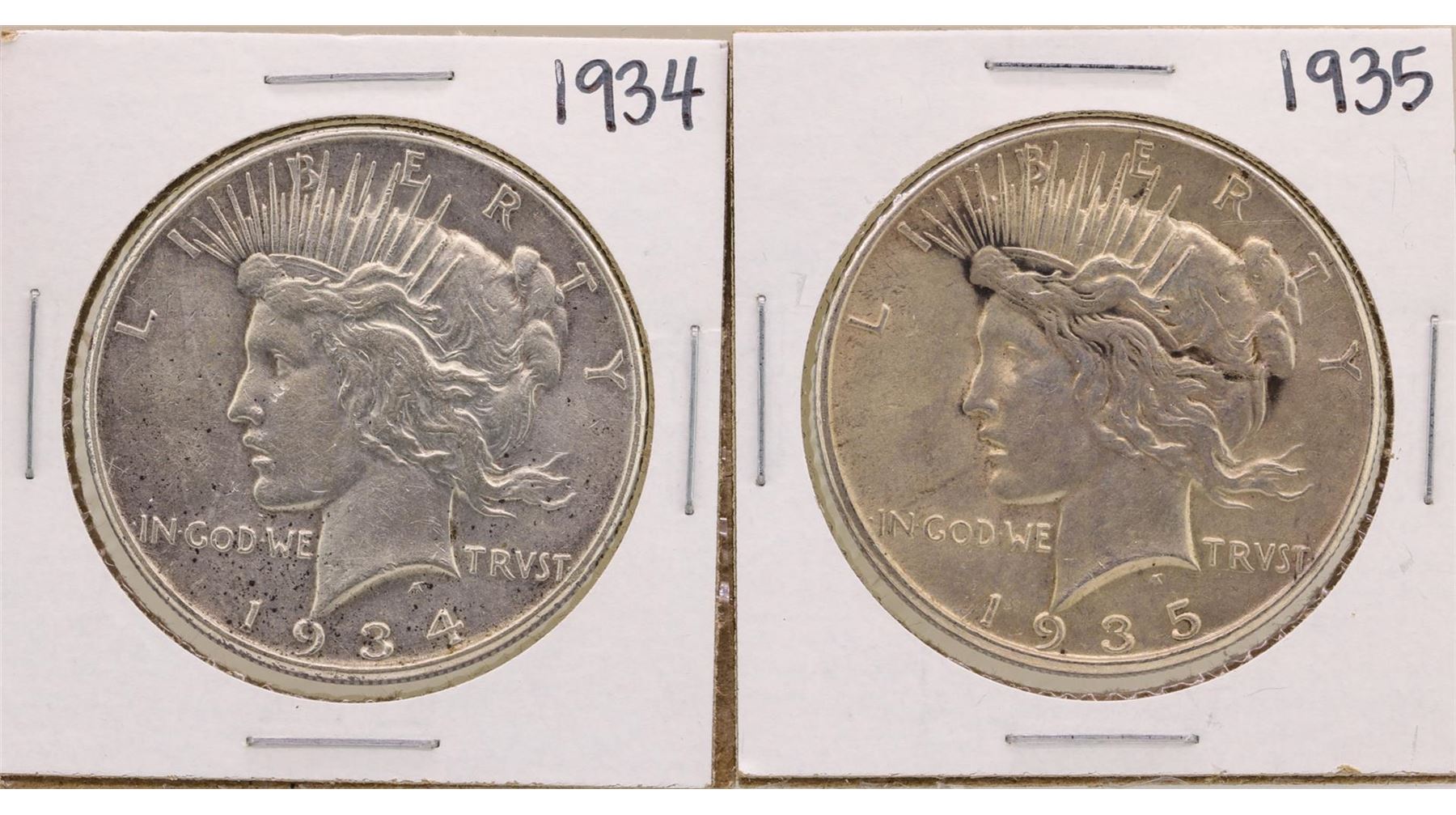 One Lot of 1934-1935 $1 Peace Silver Dollar Coins.