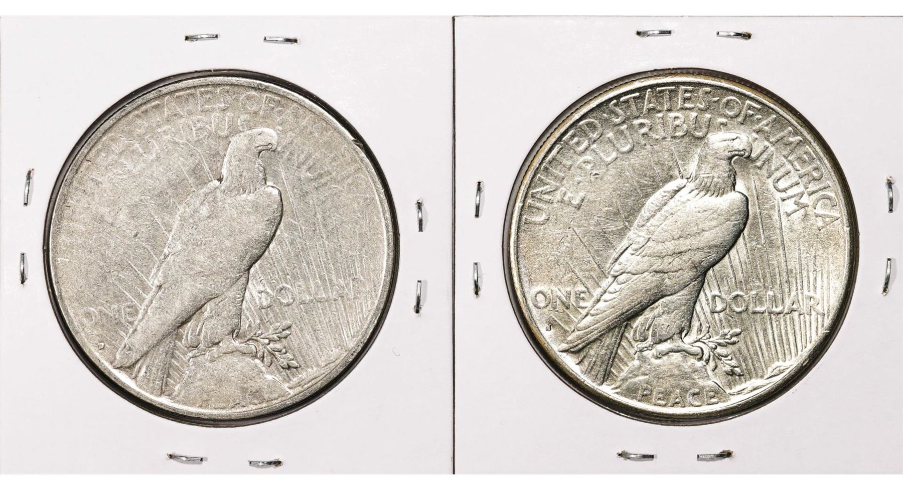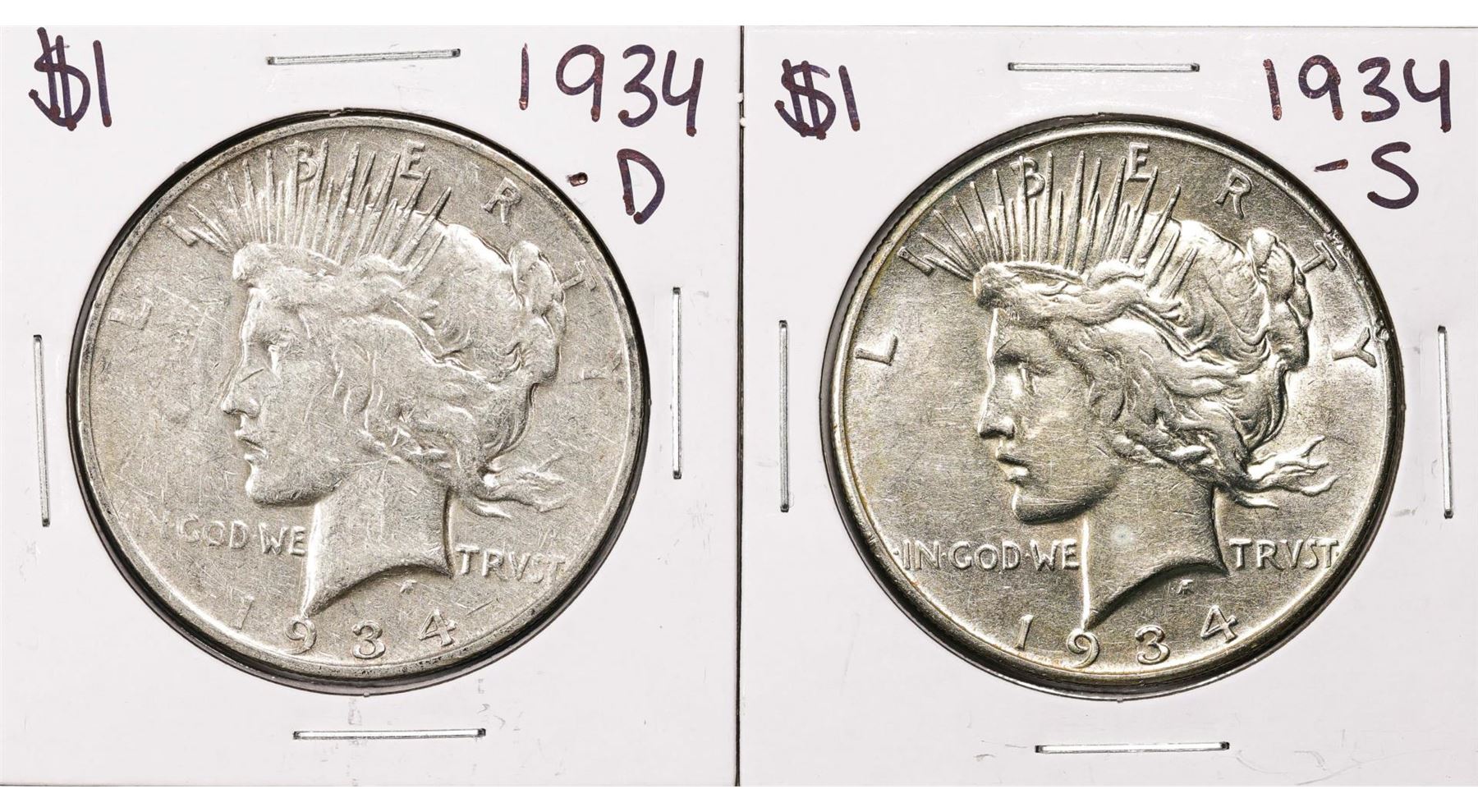 One Lot of 1934-D & 1934-S $1 Peace Silver Dollar Coins.