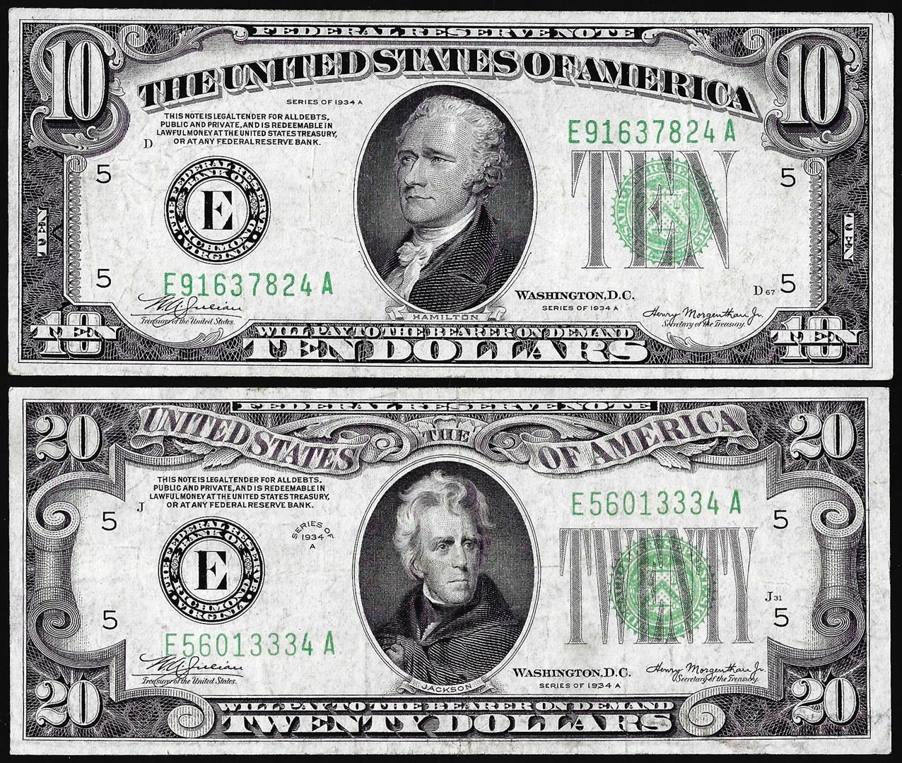 One Lot of 1934A $10 & $20 Federal Reserve Notes Richmond.