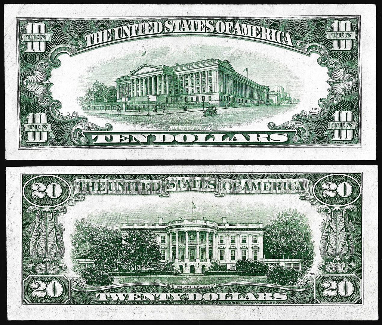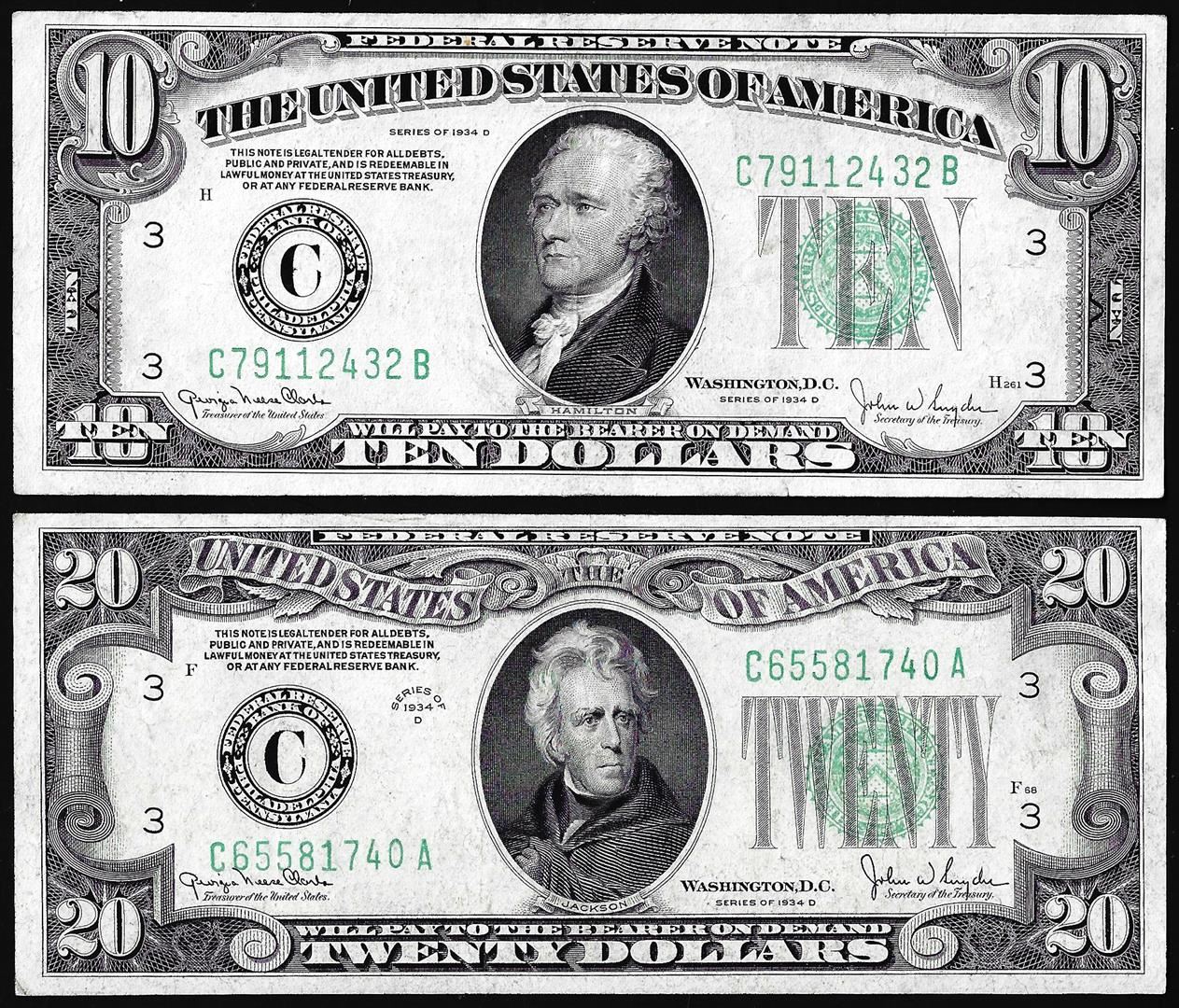 One Lot of 1934D $10 & $20 Federal Reserve Notes Philadelphia.