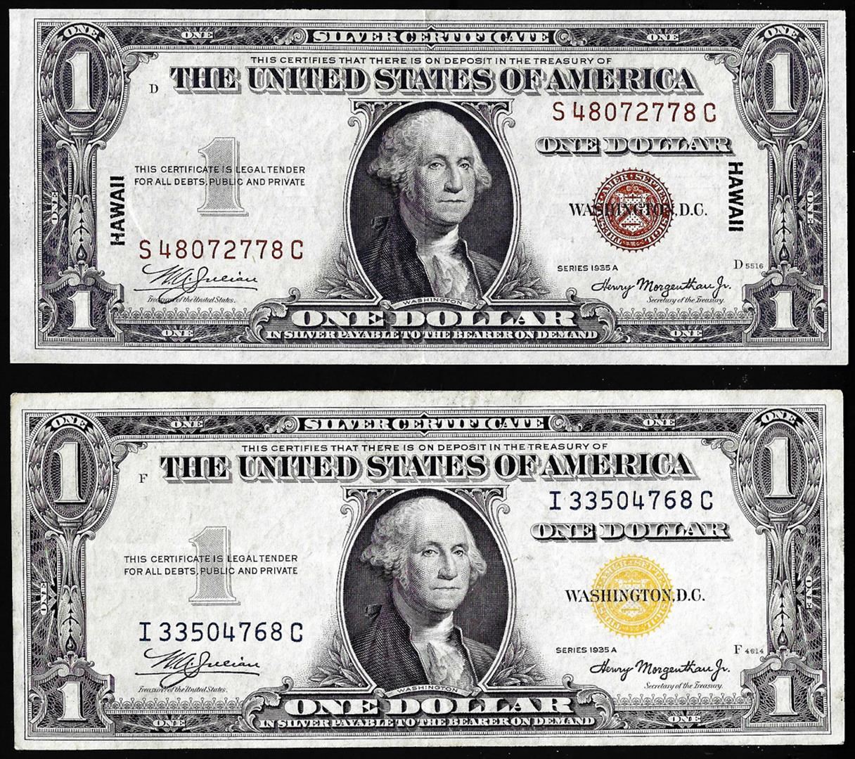Lot of 1935A $1 Hawaii & North Africa WWII Emergency Issue Silver Certificate Notes
