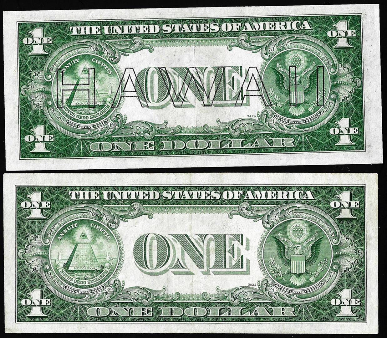 One Lot of 1935A $1 Hawaii & North Africa WWII Emergency Issue Silver Certificate Notes.