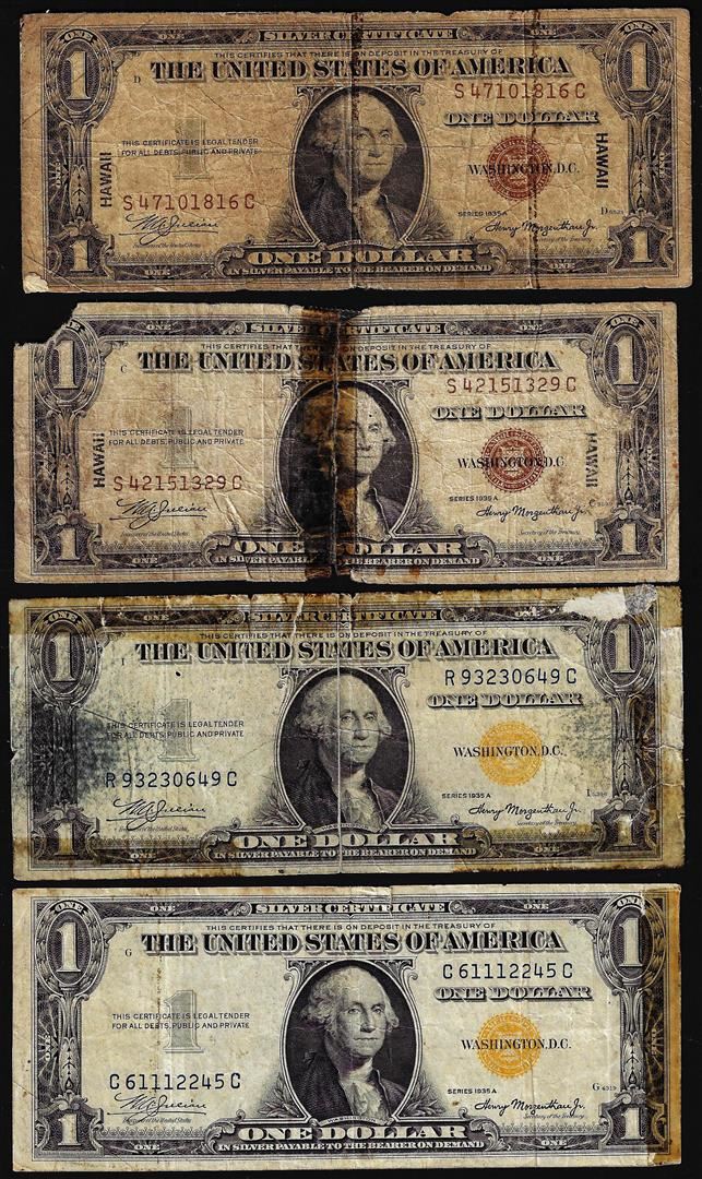 Lot of 1935A $1 Hawaii and North Africa WWII Emergency Issue Silver Certificate Notes