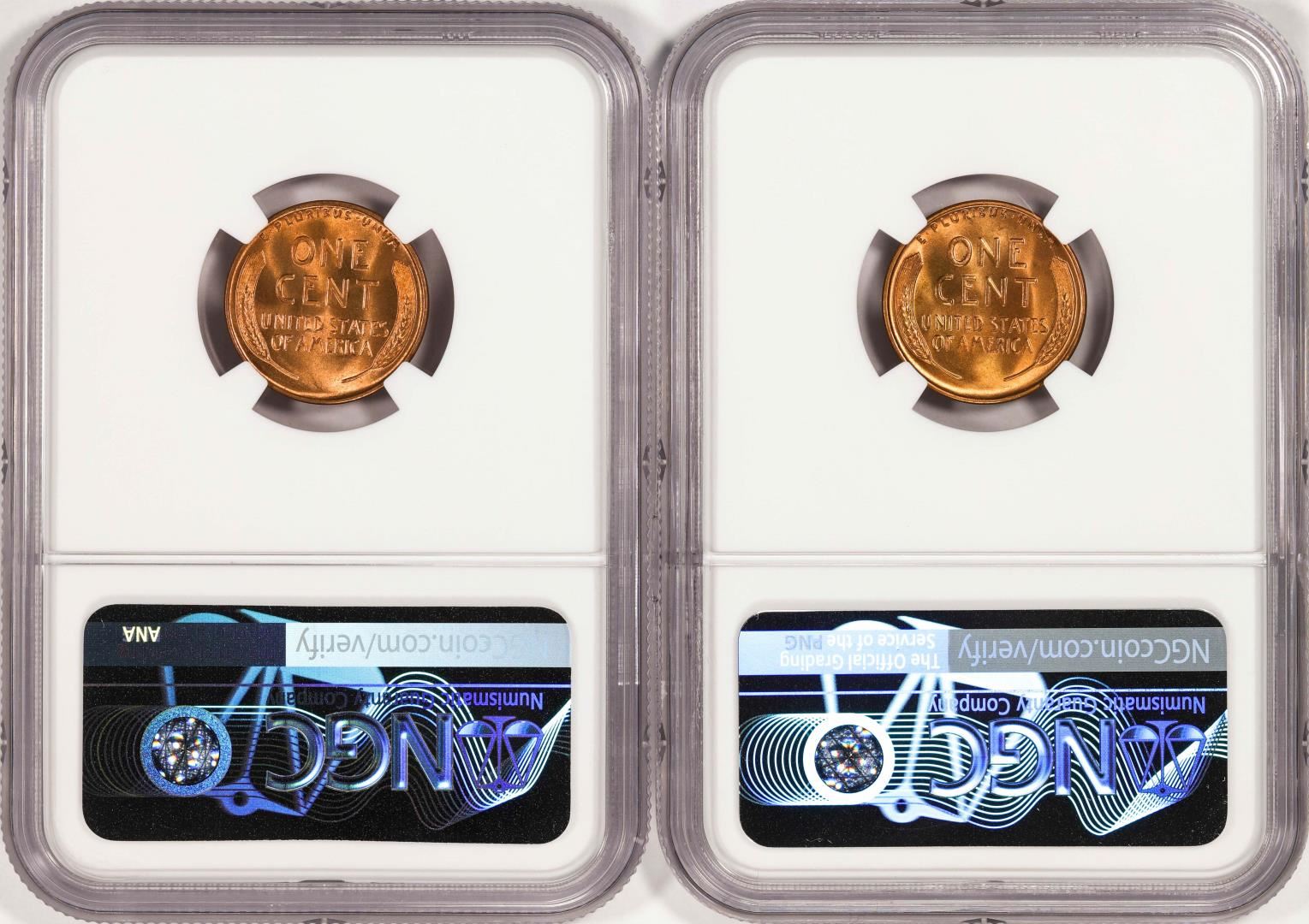 One Lot of 1937-D & 1937-S Lincoln Wheat Cent Coins NGC MS67RD. NGC Certified.