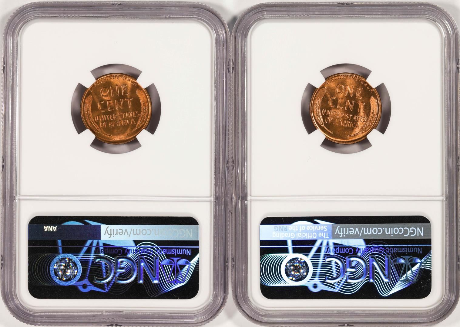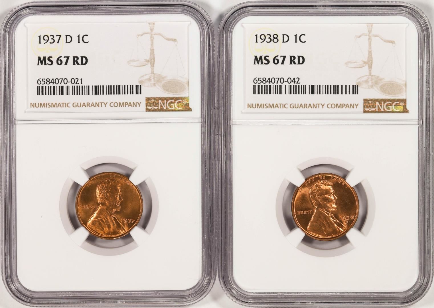 One Lot of 1937-D & 1938-D Lincoln Wheat Cent Coins NGC MS67RD. NGC Certified.