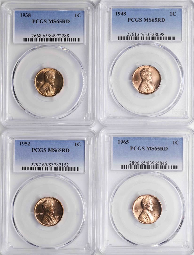 Lot of 1938, 1948, 1952, 1965 Lincoln Wheat Cent Coins PCGS MS65RD