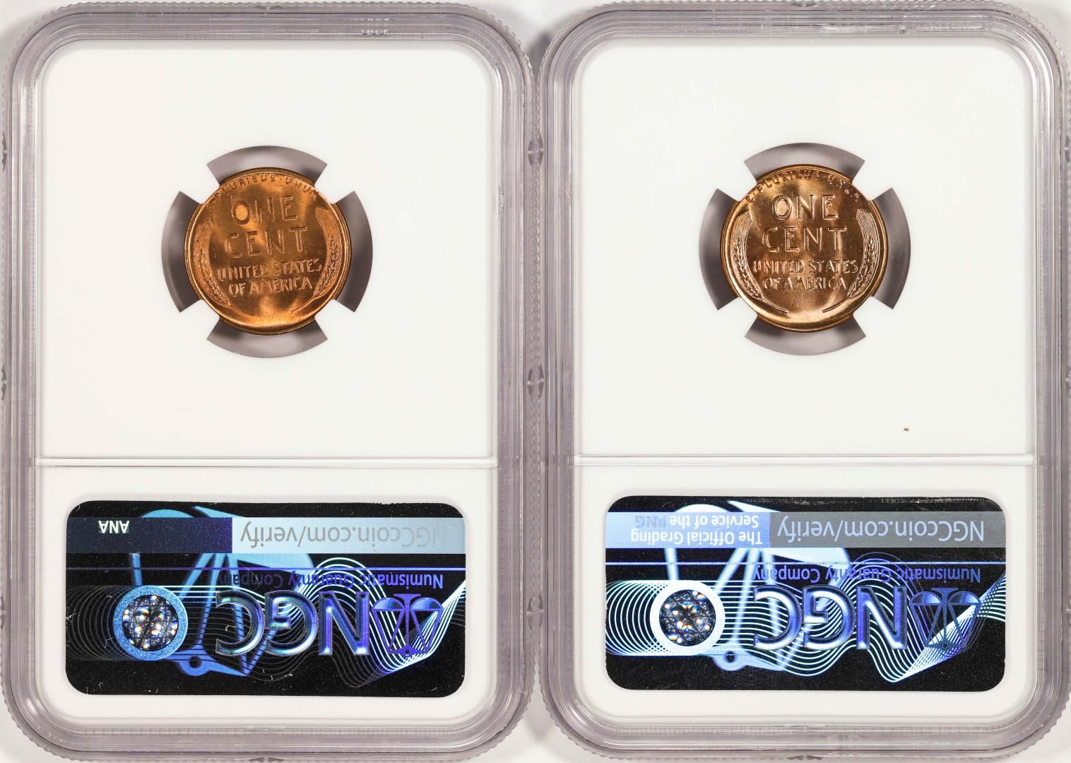 One Lot of 1939 & 1939-S Lincoln Wheat Cent Coins NGC MS67RD. NGC Certified.