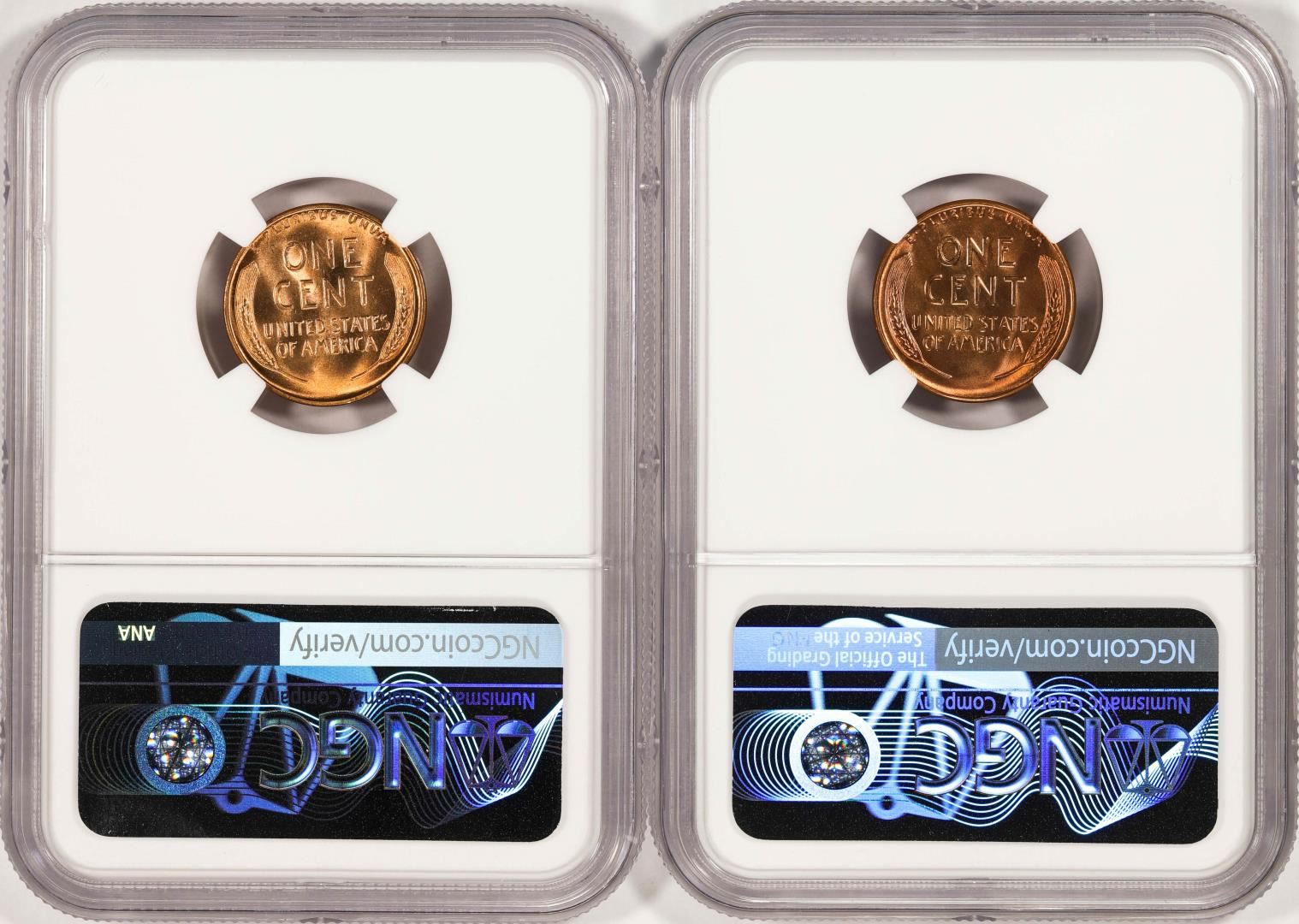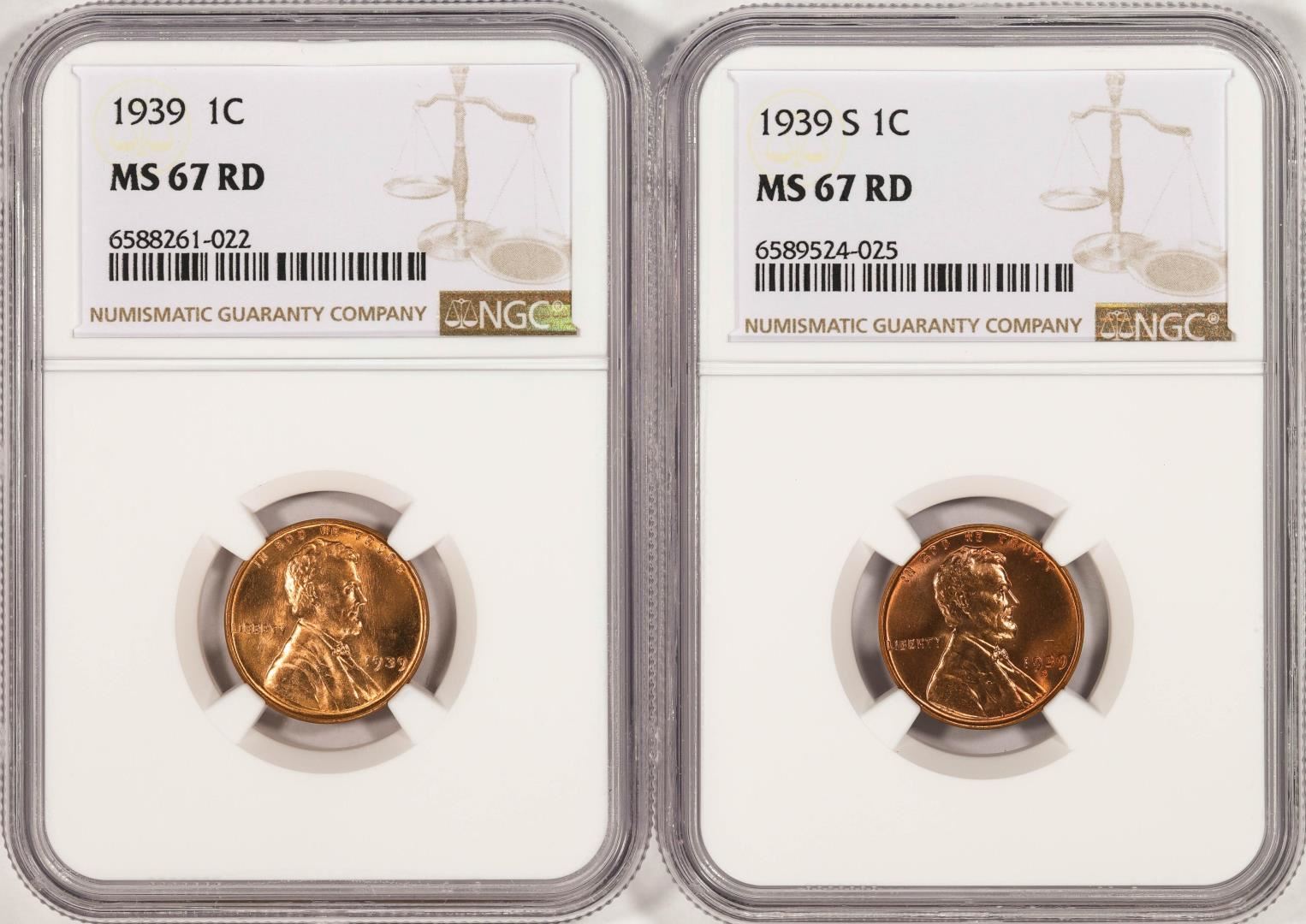 One Lot of 1939 & 1939-S Lincoln Wheat Cent Coins NGC MS67RD. NGC Certified.