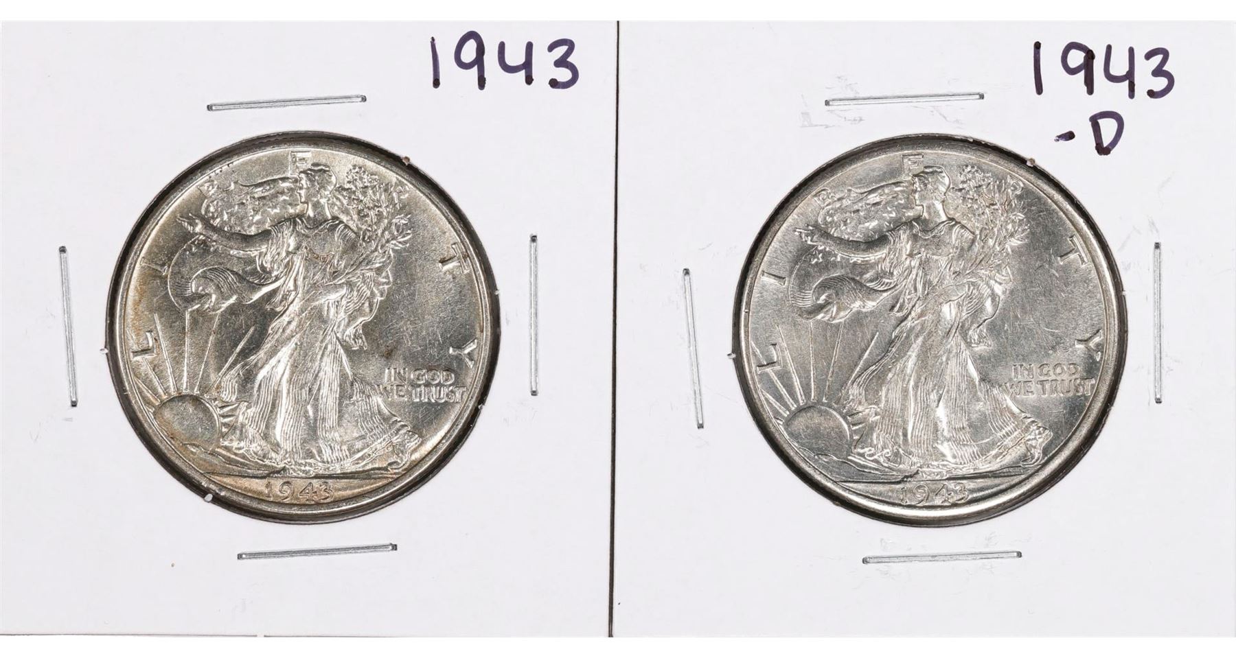 One Lot of 1943 & 1943-D Walking Liberty Half Dollar Coins.