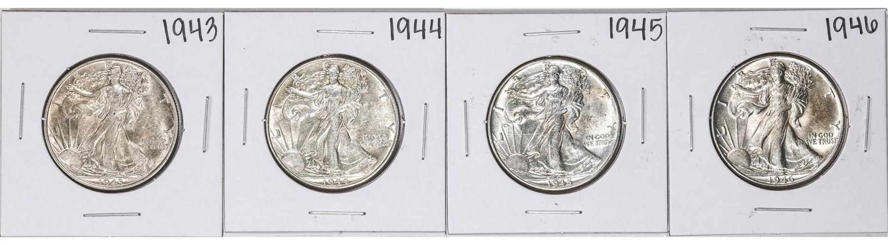 One Lot of 1943-1946 Walking Liberty Half Dollar Coins.