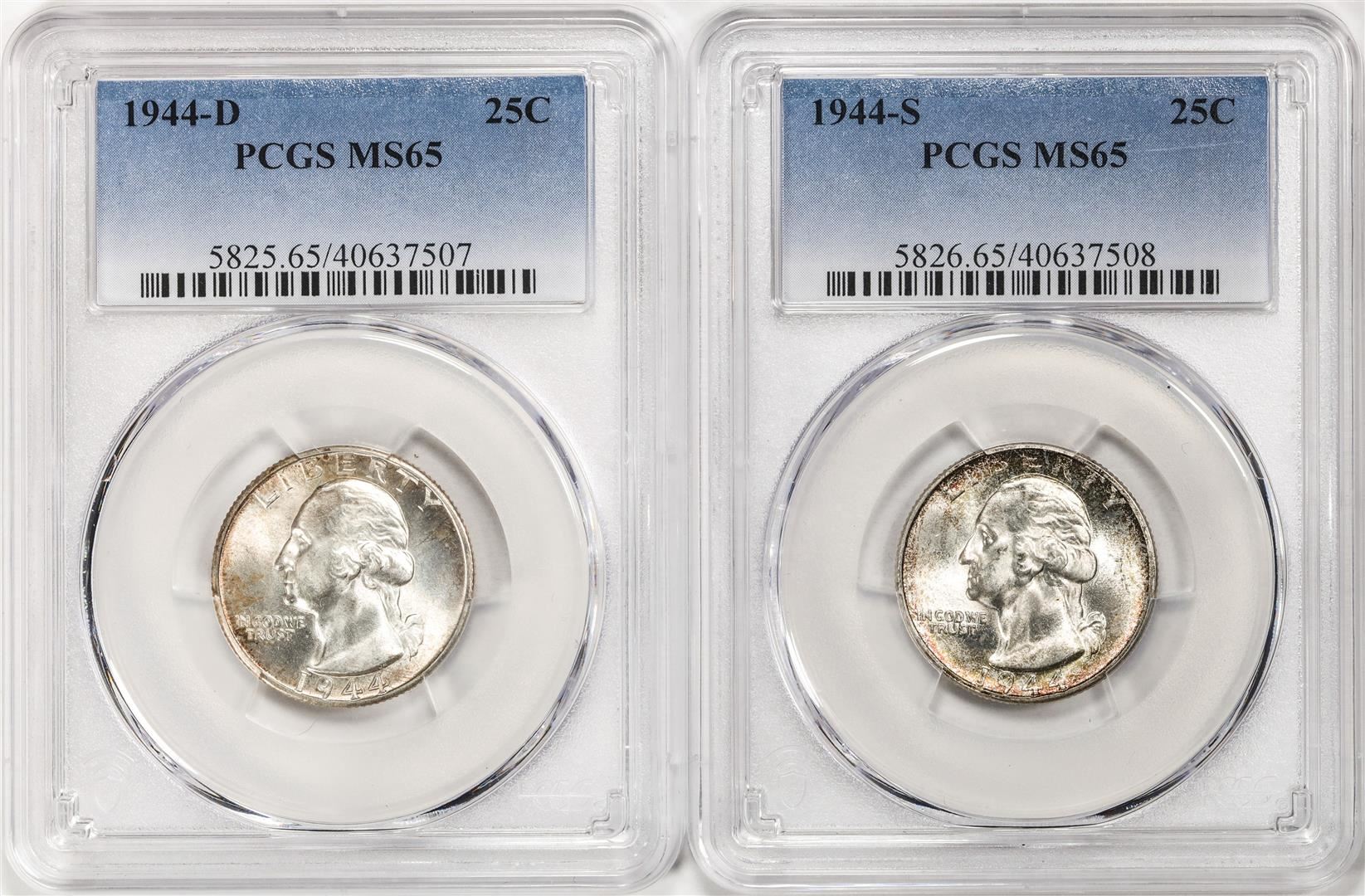 Lot of 1944-D & 1944-S Washington Quarter Coins PCGS MS65