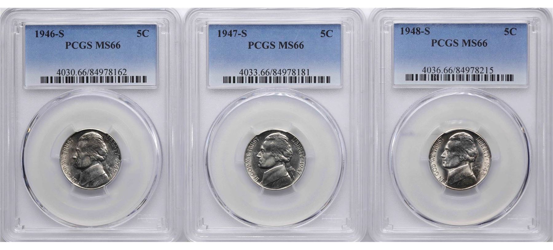 Lot of 1946-S to 1948-S Jefferson Nickel Coins PCGS MS66