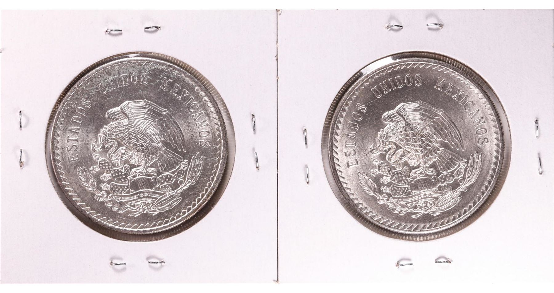 One Lot of 1947-1948 Mexico Cuauhtemoc Cinco Pesos Silver Coins.