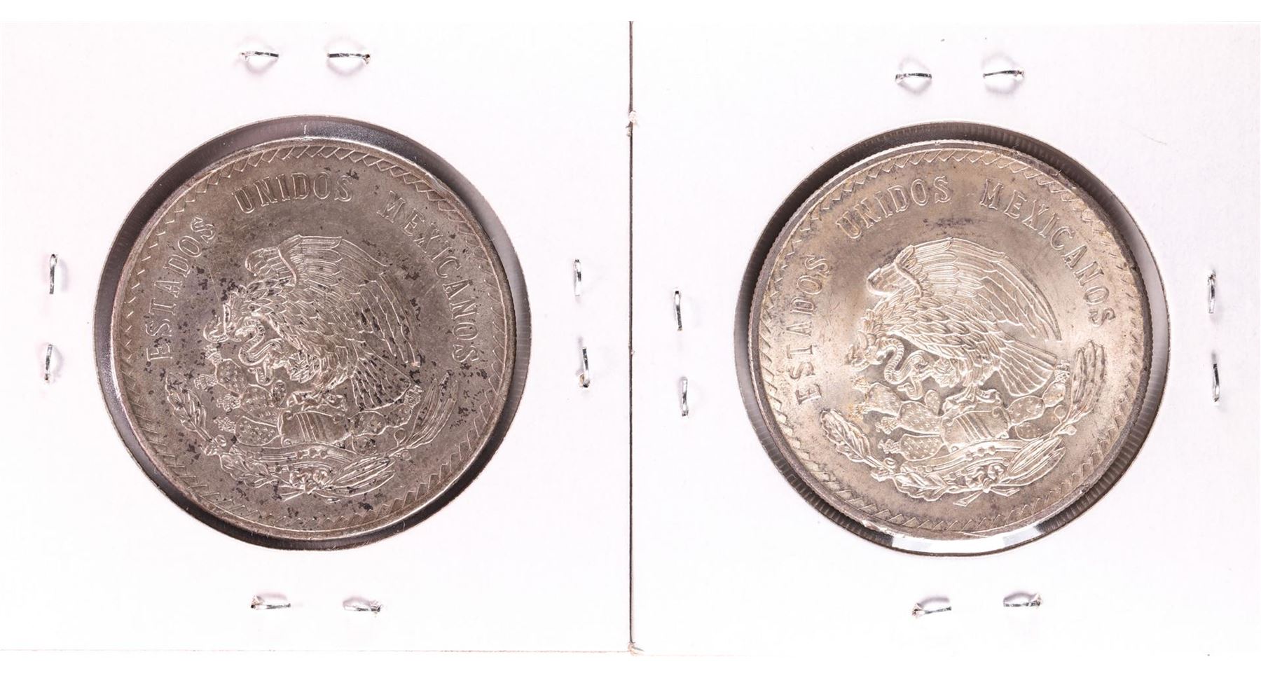 One Lot of 1947-1948 Mexico Cuauhtemoc Cinco Pesos Silver Coins.