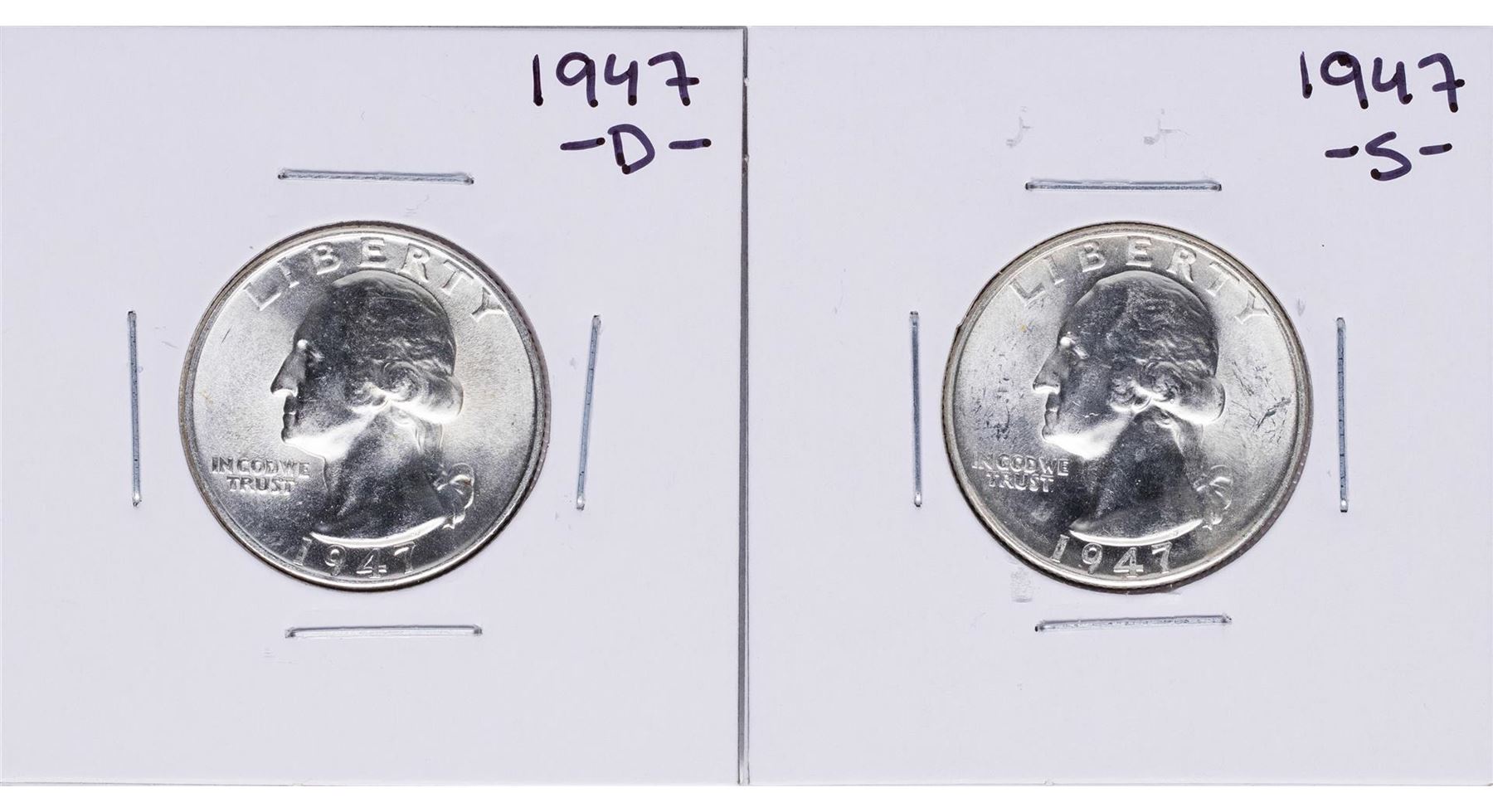 One Lot of 1947-D & 1947-S Washington Quarter Coins.
