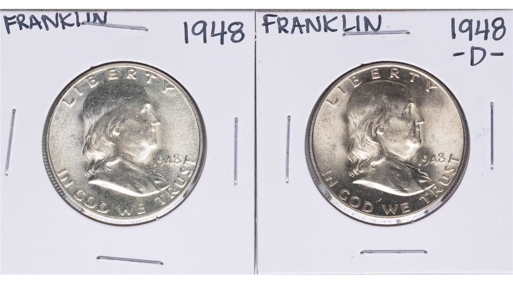 One Lot of 1948 & 1948-D Franklin Half Dollar Coins.