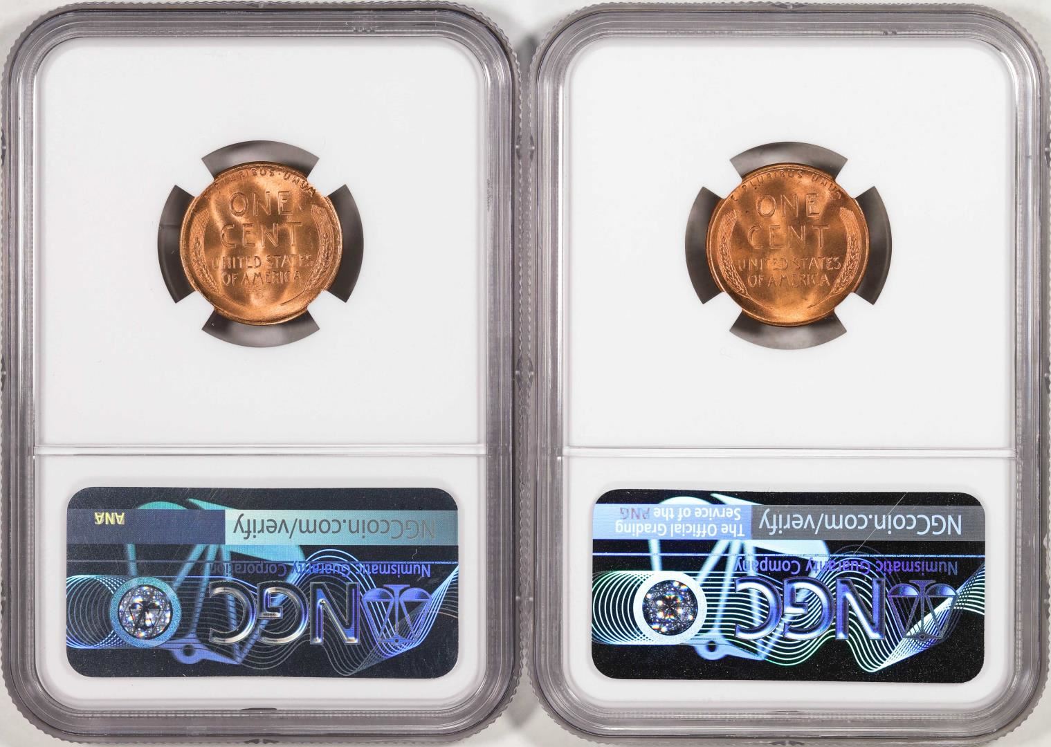 One Lot of 1948-S & 1949-S Lincoln Wheat Cent Coins NGC MS67RD. NGC Certified.