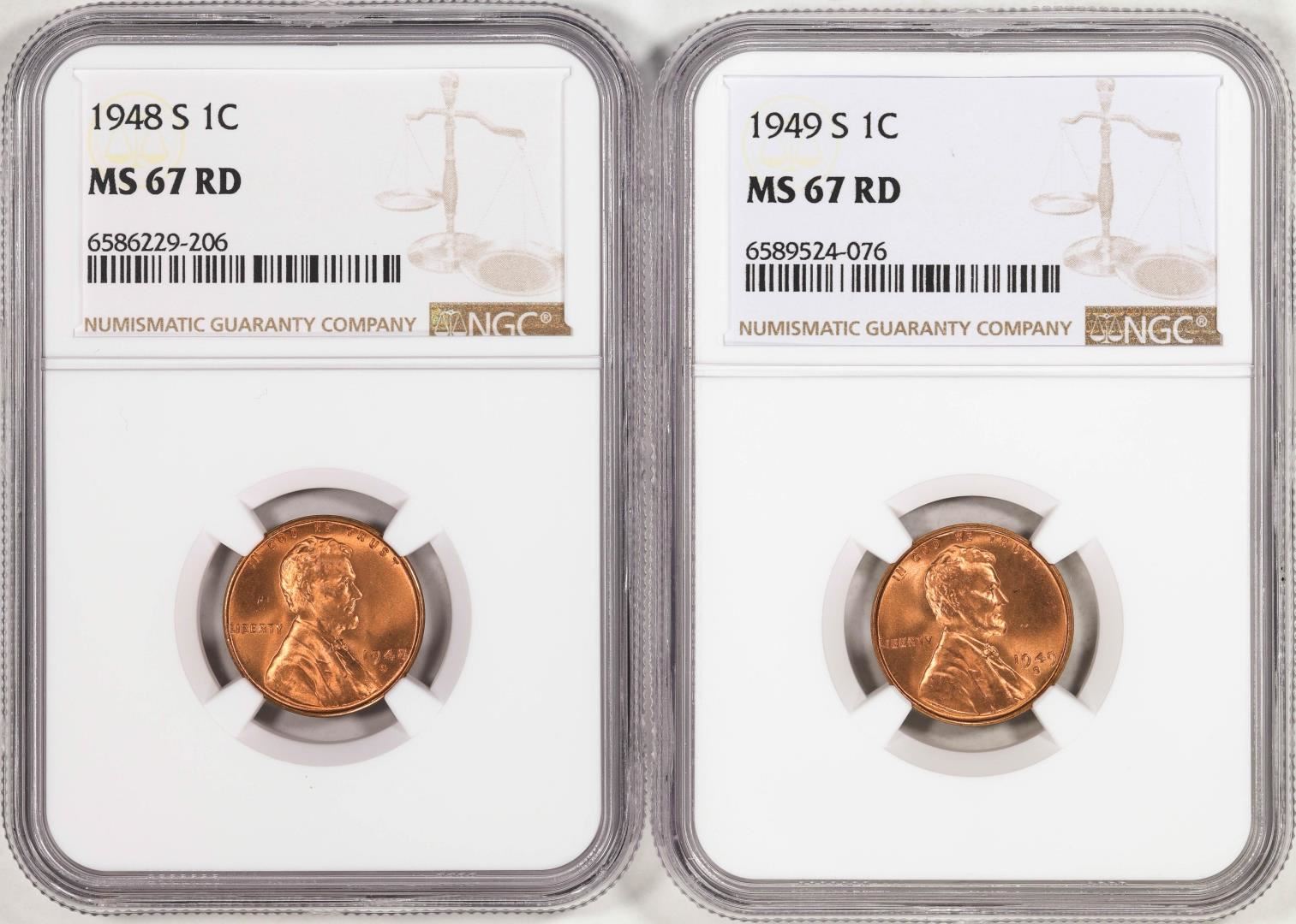 One Lot of 1948-S & 1949-S Lincoln Wheat Cent Coins NGC MS67RD. NGC Certified.