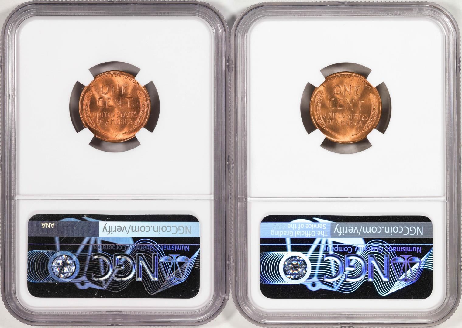 One Lot of 1948-S & 1949-S Lincoln Wheat Cent Coins NGC MS67RD. NGC Certified.