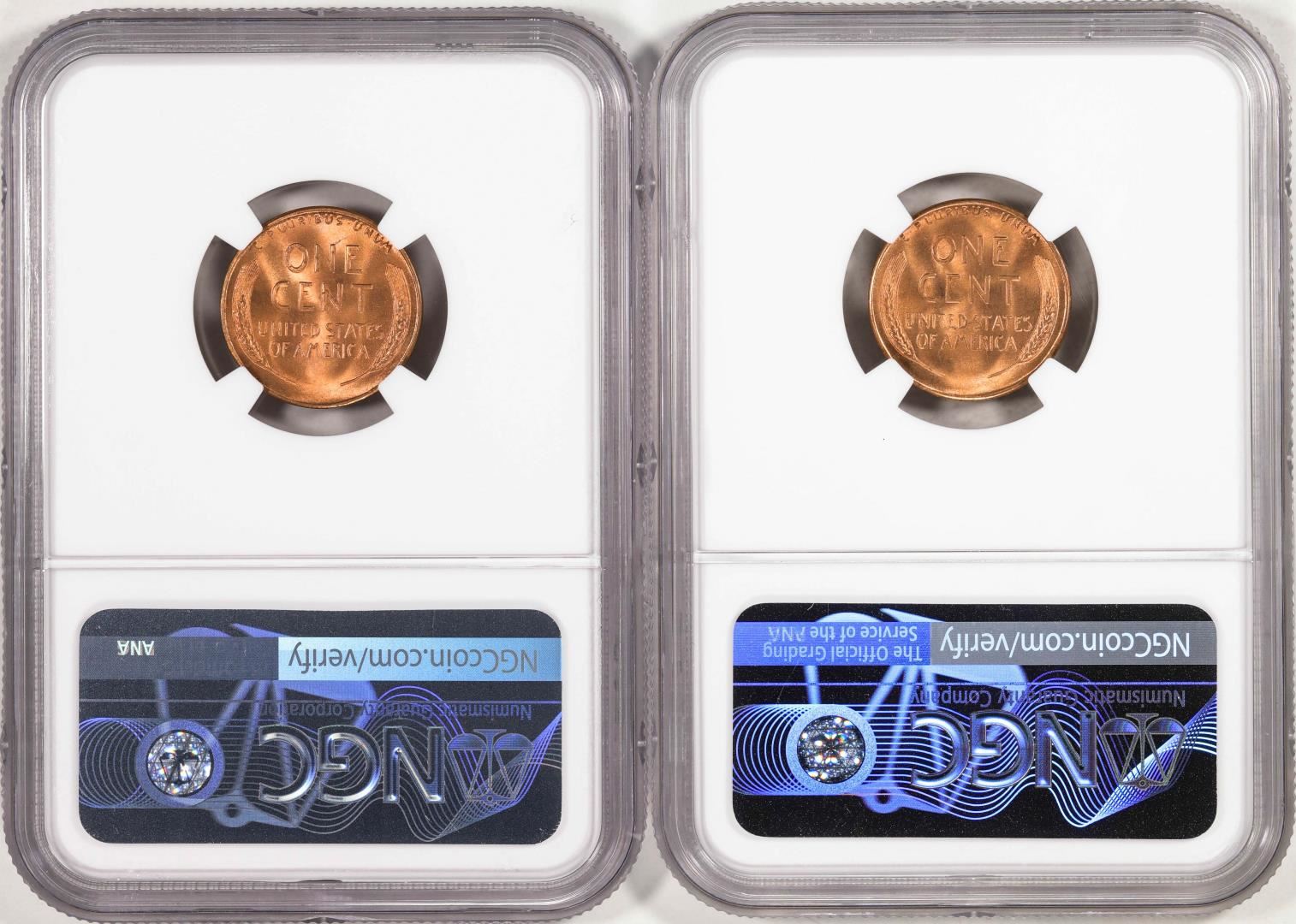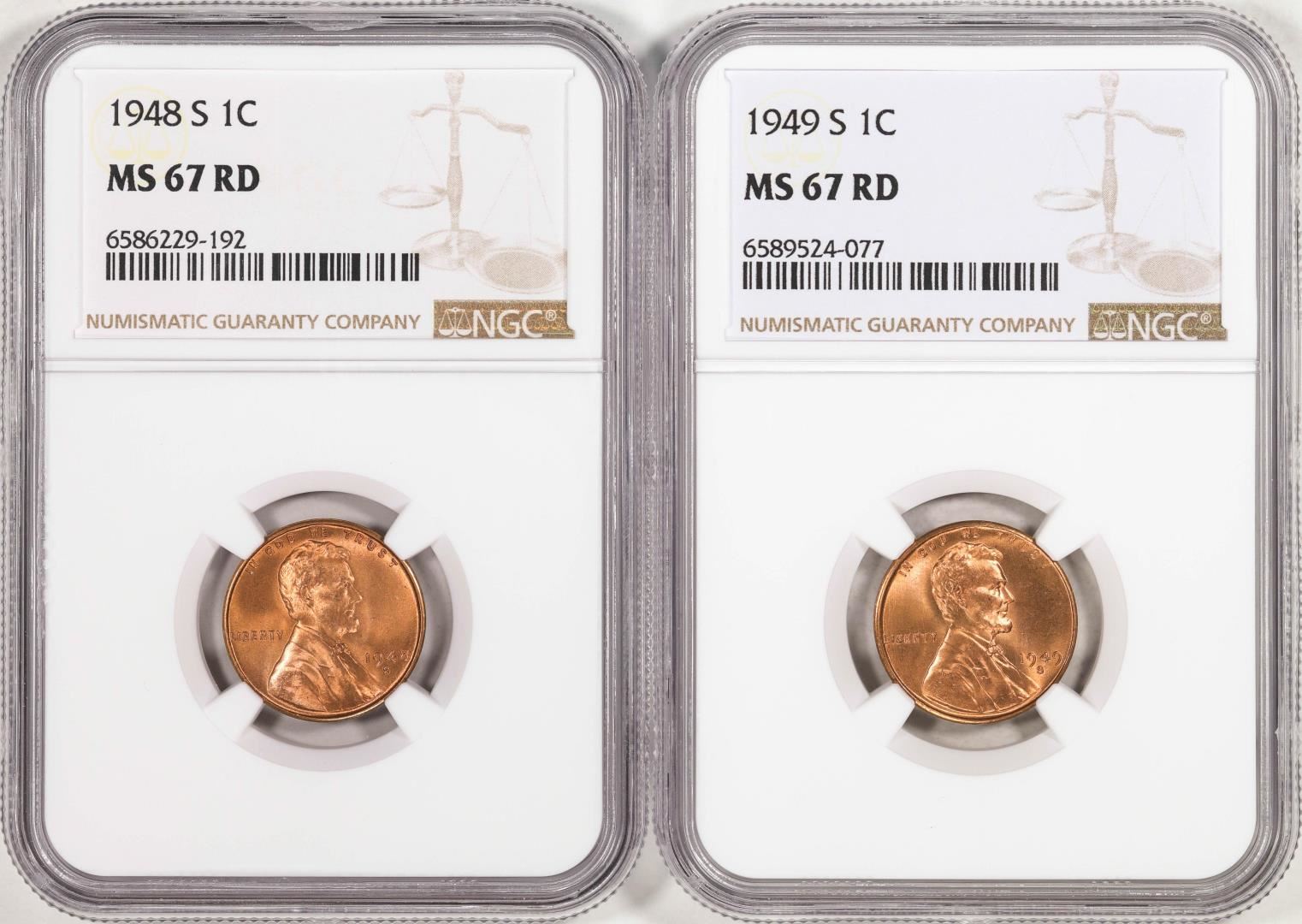 One Lot of 1948-S & 1949-S Lincoln Wheat Cent Coins NGC MS67RD. NGC Certified.