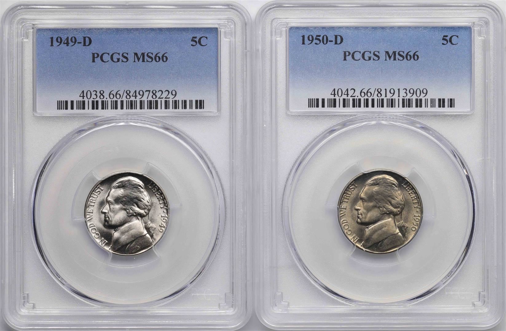 Lot of 1949-D & 1950-D Jefferson Nickel Coins PCGS MS66