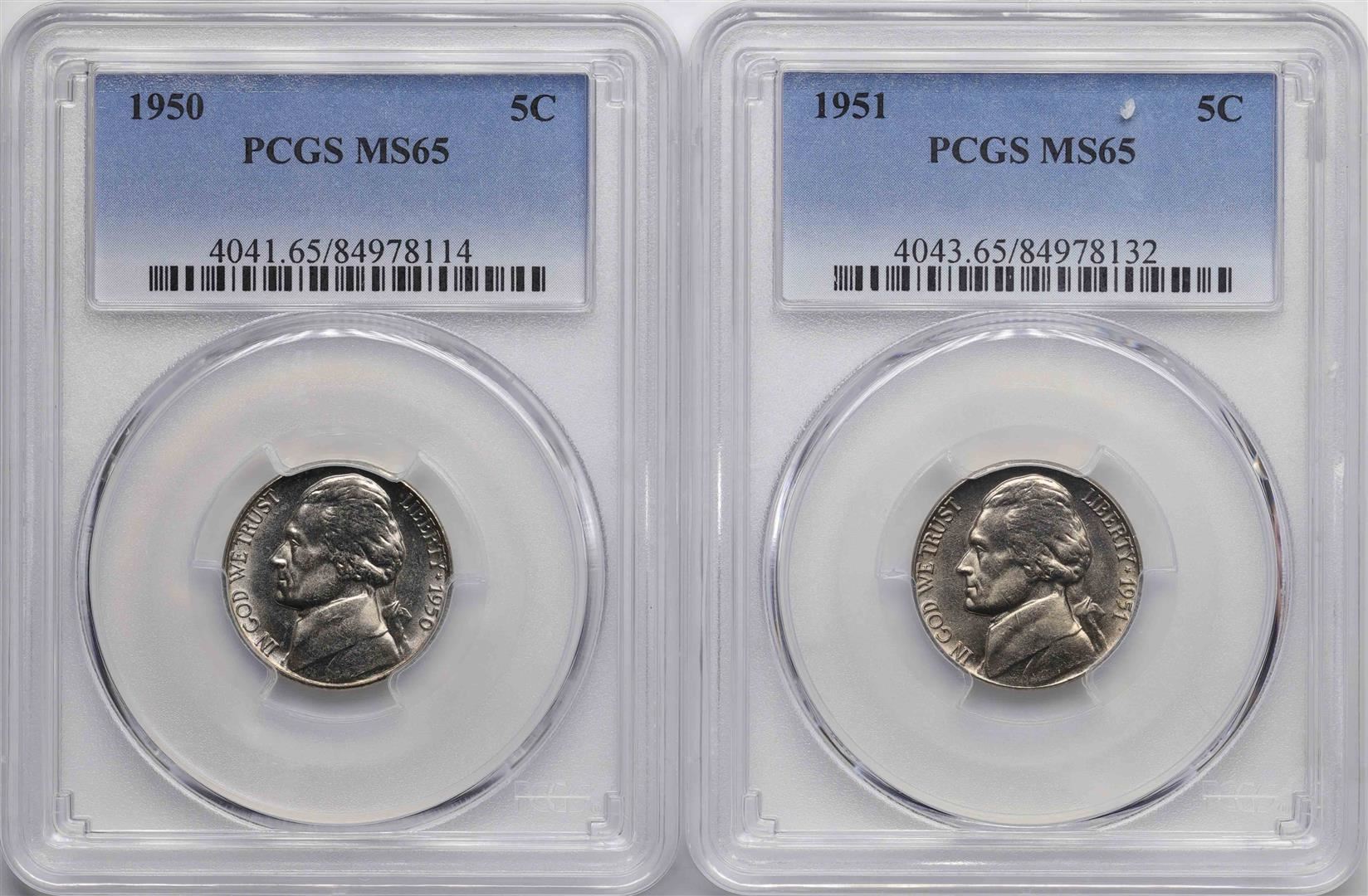 One Lot of 1950-1951 Jefferson Nickel Coins PCGS MS65. PCGS Graded.