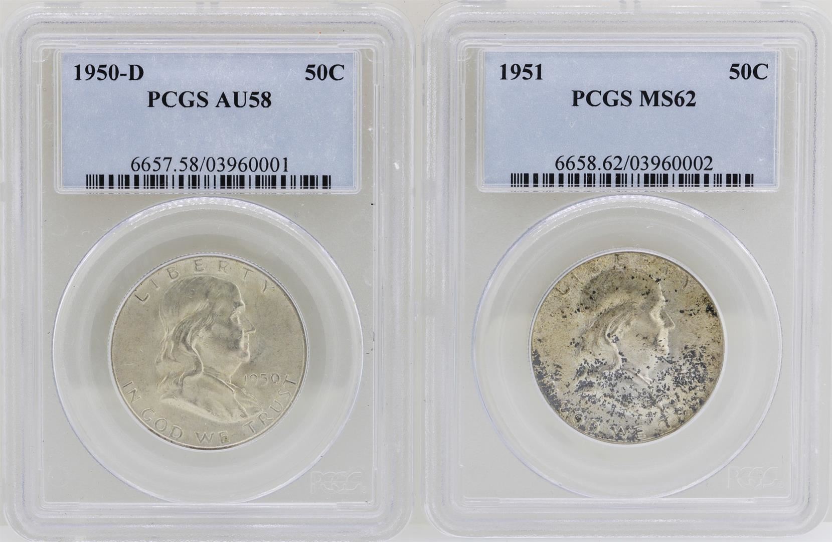 Lot of 1950-D Half Dollar PCGS AU58 & 1951 Half Dollar PCGS MS62 Coins