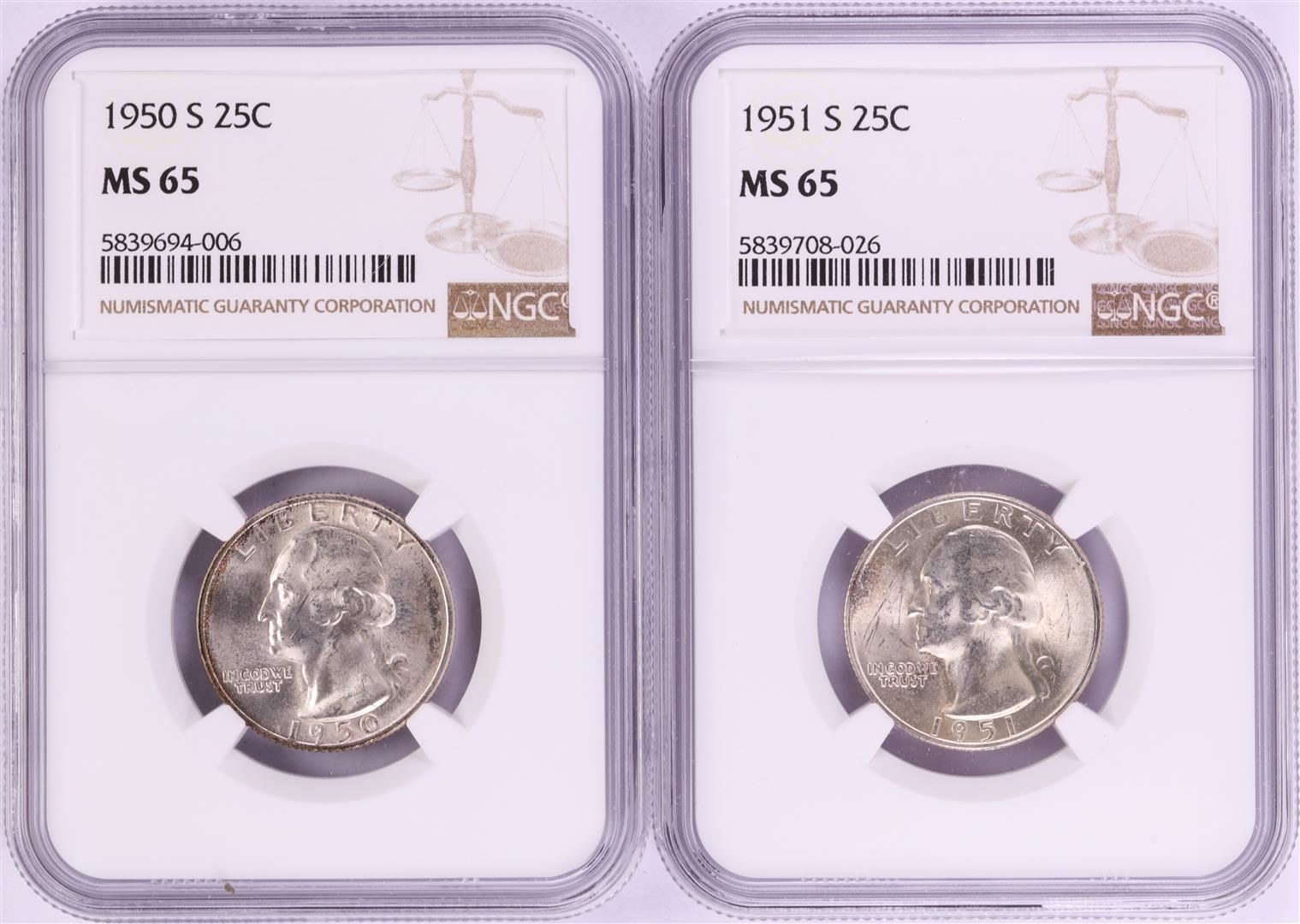 One Lot of 1950-S & 1951-S Washington Quarter Coins NGC MS65. NGC Certified.