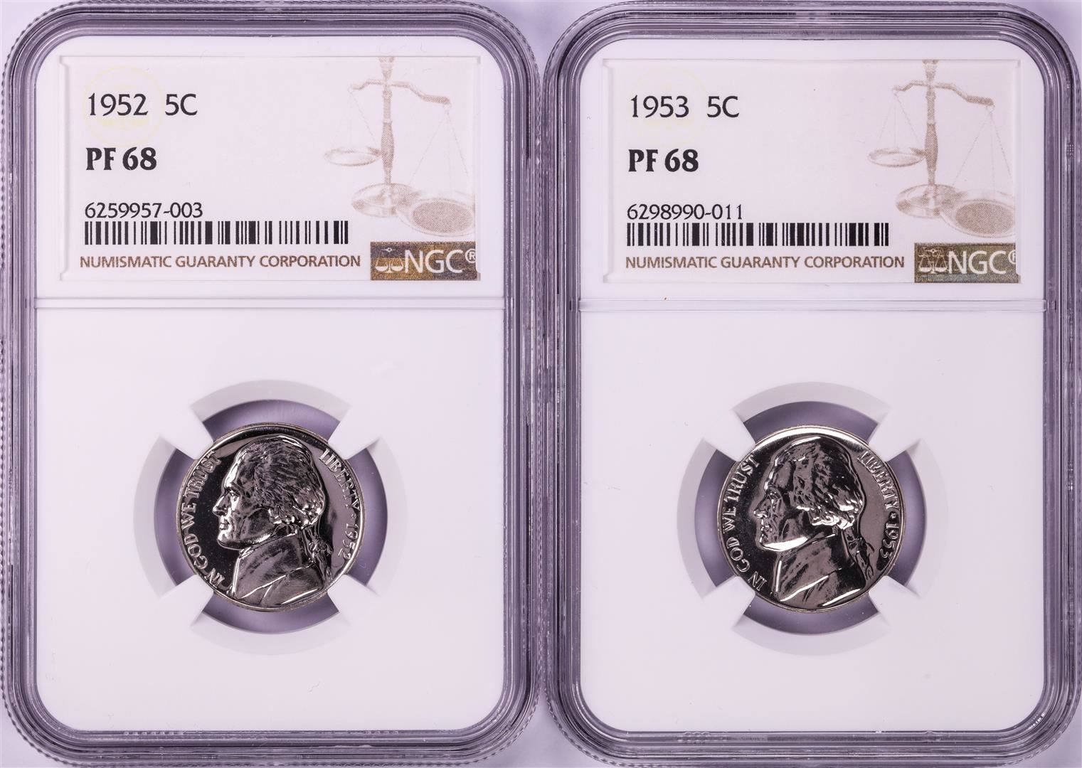 One Lot of 1952-1953 Proof Jefferson Nickel Coins NGC PF68. NGC Certified.