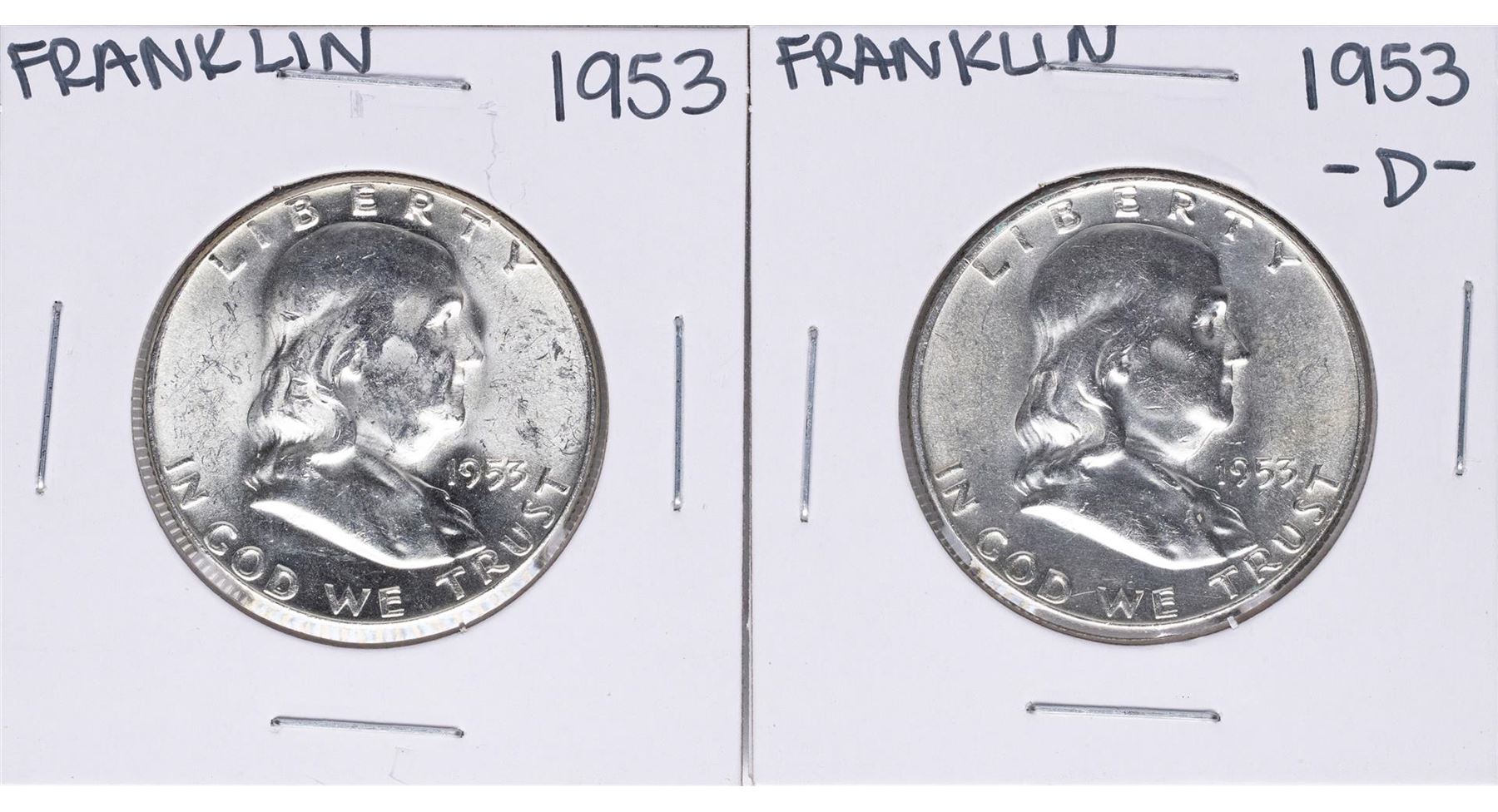 One Lot of 1953 & 1953-D Franklin Half Dollar Coins.