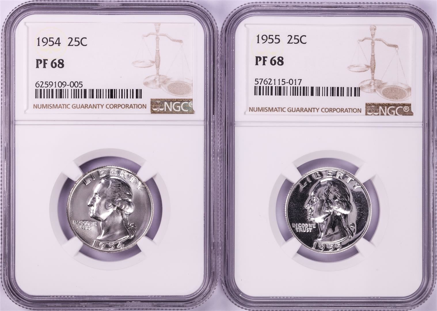 One Lot of 1954-1955 Proof Washington Quarter Coins NGC PF68. NGC Certified.