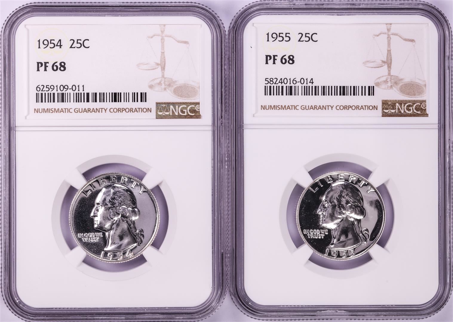 One Lot of 1954-1955 Proof Washington Quarter Coins NGC PF68. NGC Certified.
