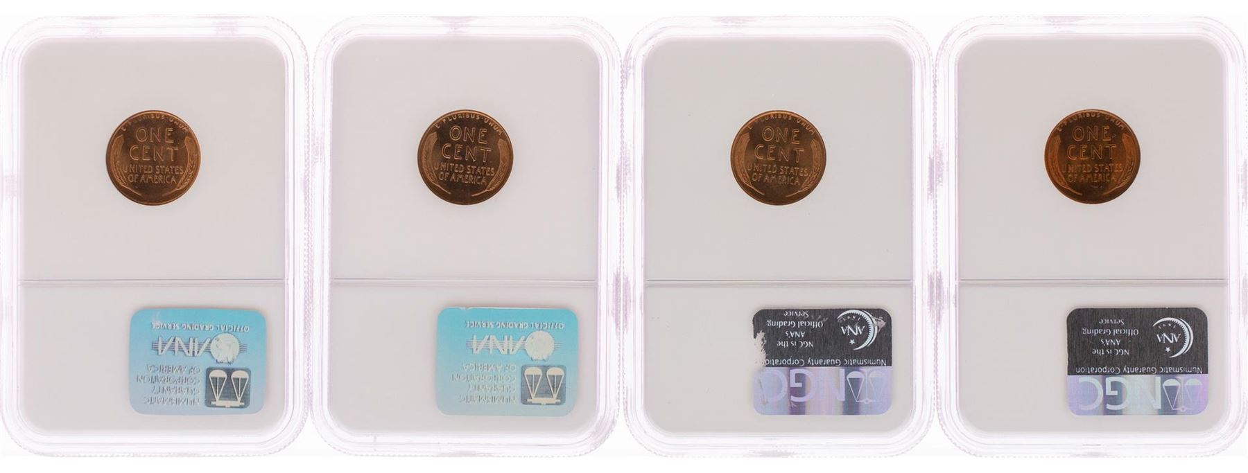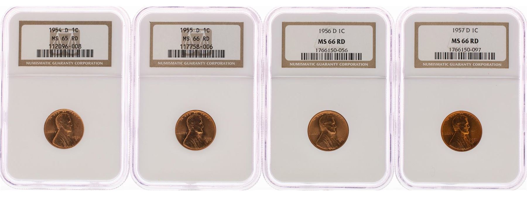 Lot of 1954-D/1955-D/1956-D/1957-D Lincoln Wheat Cent Coins NGC MS65RD/MS66RD