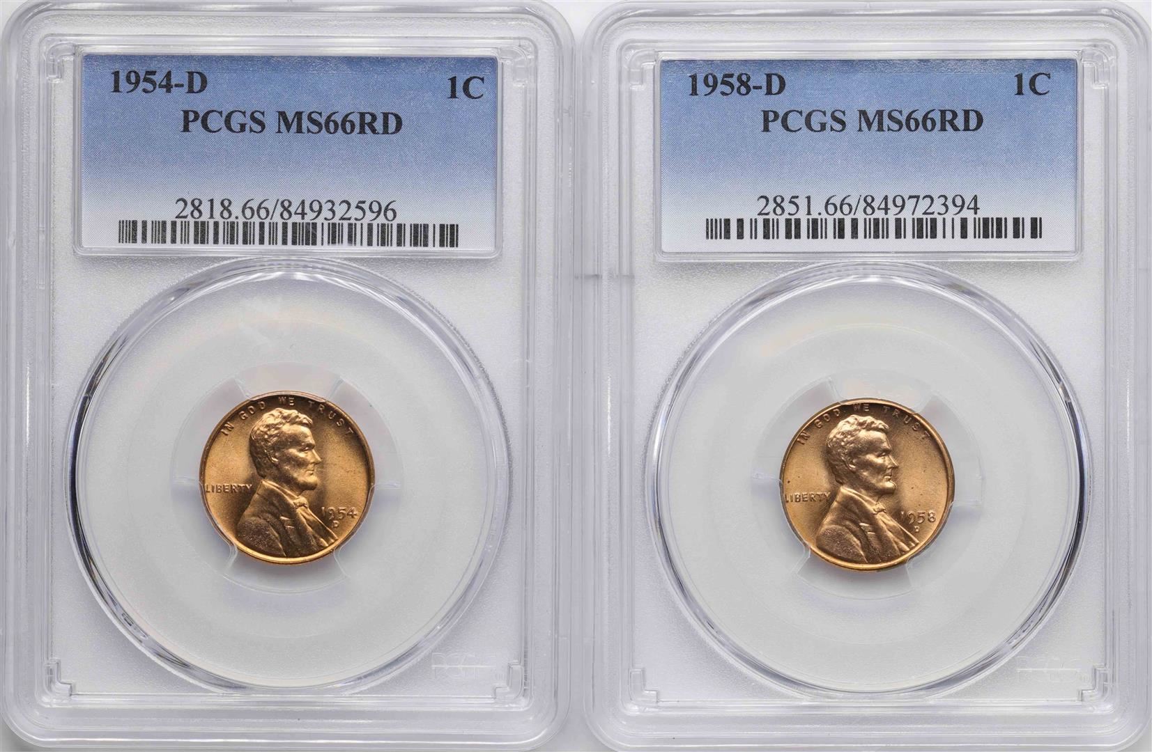Lot of 1954-D & 1958-D Lincoln Wheat Cent Coins PCGS MS66RD