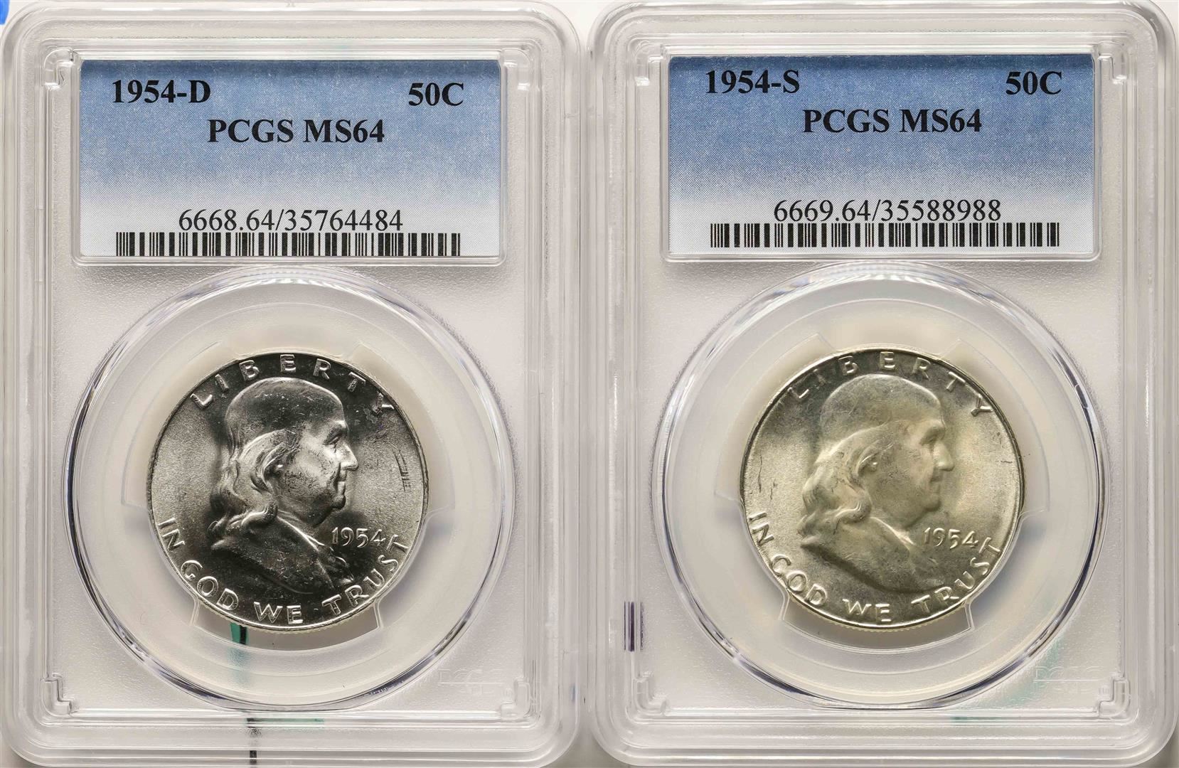 Lot of 1954-S & 1954-D Franklin Half Dollar Coins PCGS MS64