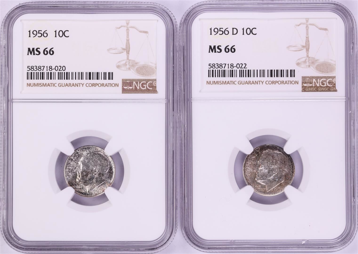 One Lot of 1956 & 1956-D Roosevelt Dime Coins NGC MS66. NGC Certified.