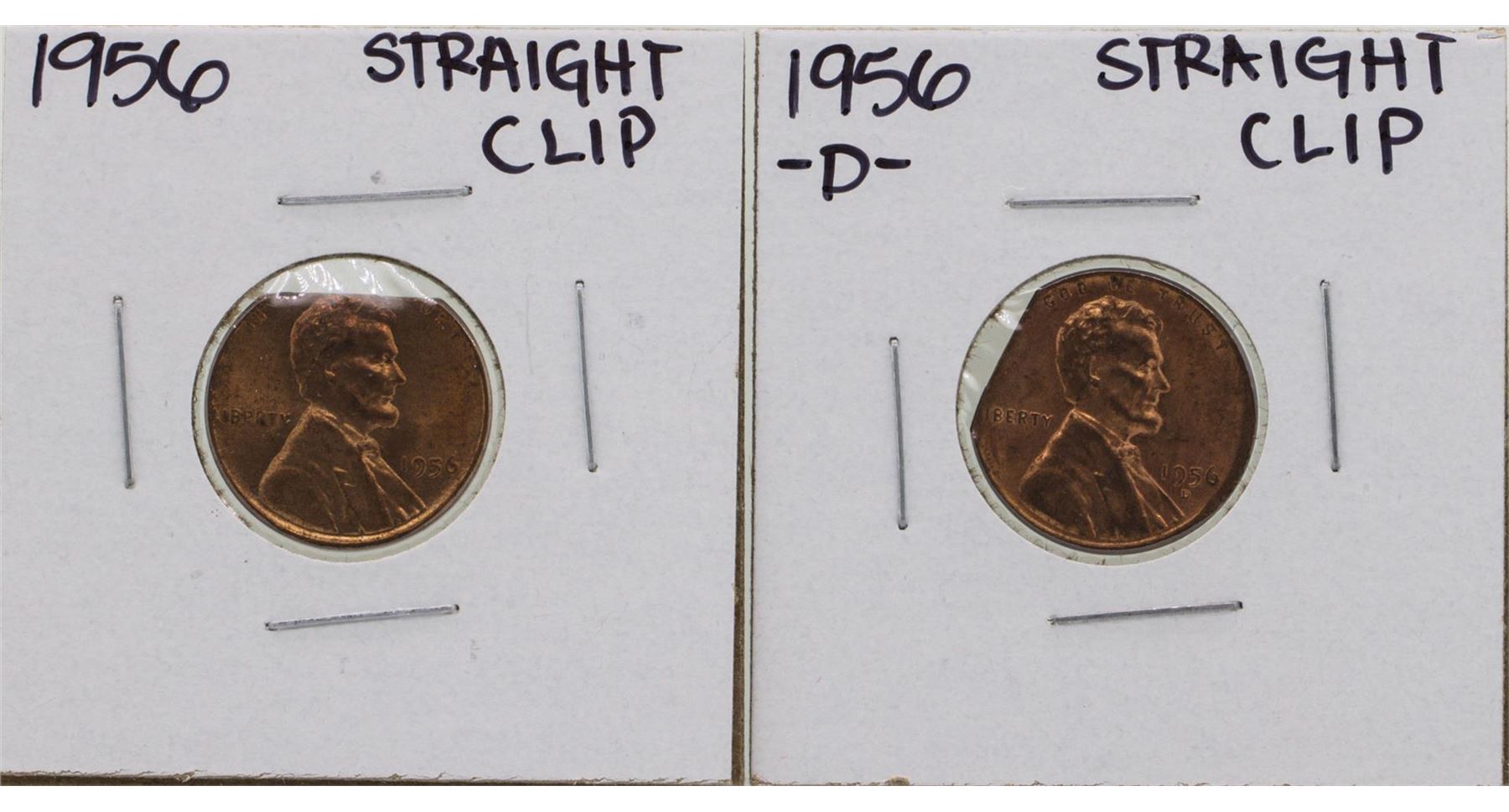 One Lot of 1956 & 1956-D Straight Clipped Planchet Lincoln Wheat Penny ERROR Coins.